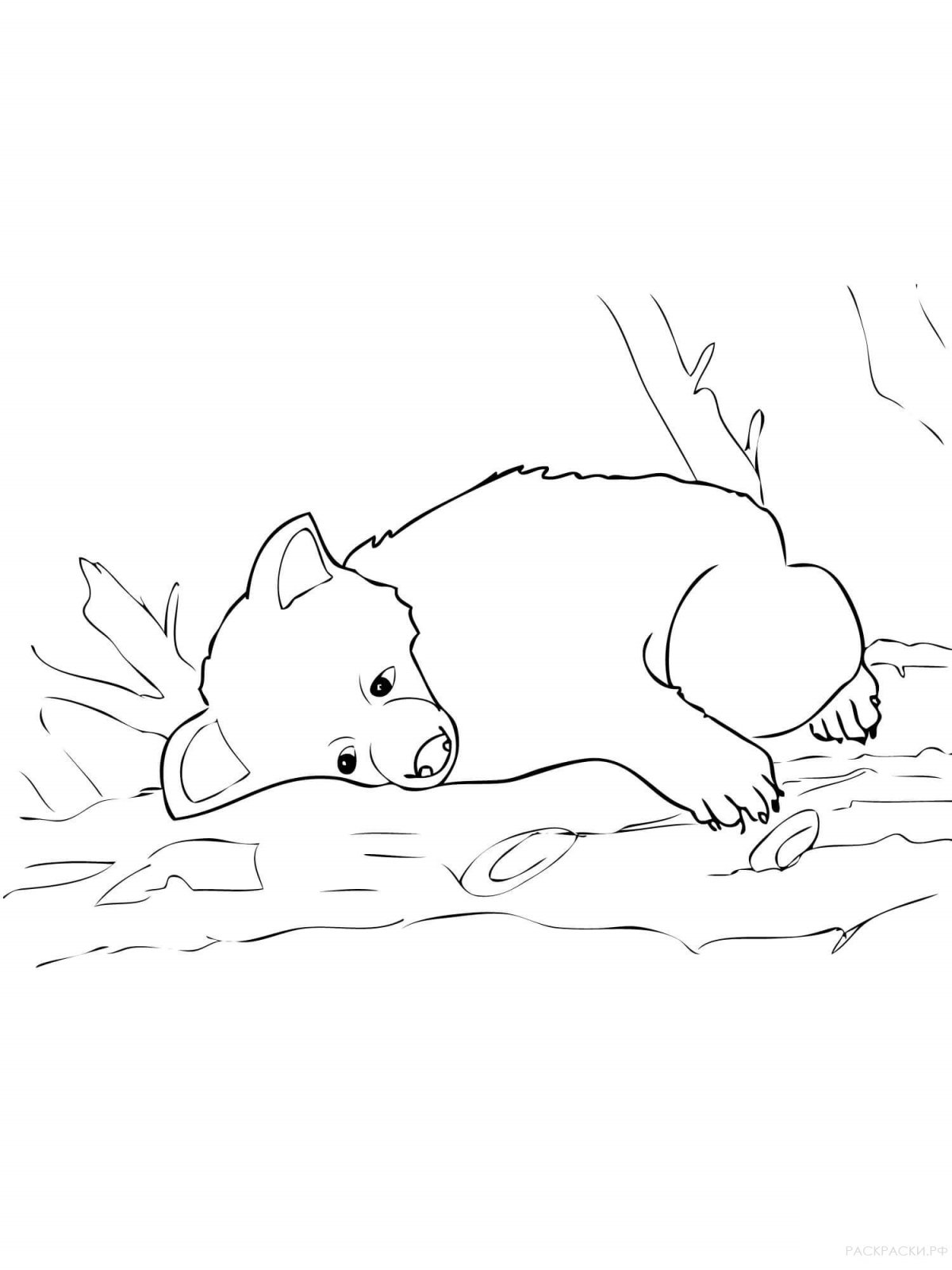 Раскраска Медвежонок спит в берлоге