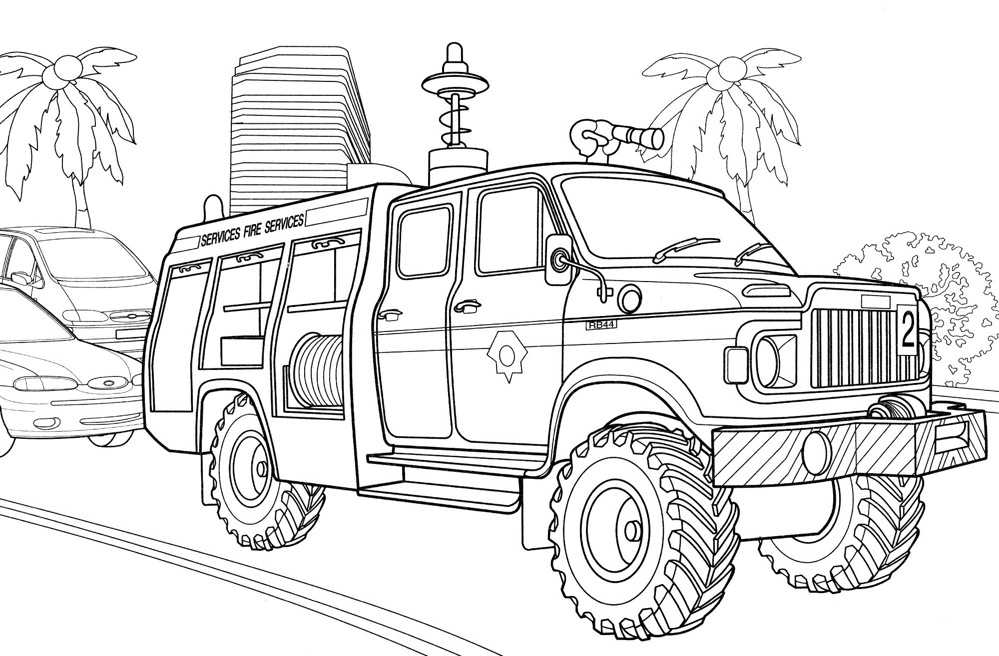 Пожарная машина раскраска для детей