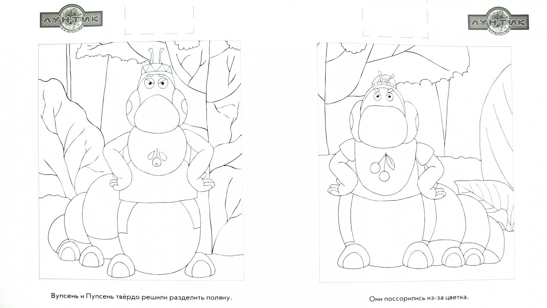 Раскраски для детей Вупсень и Пупсень
