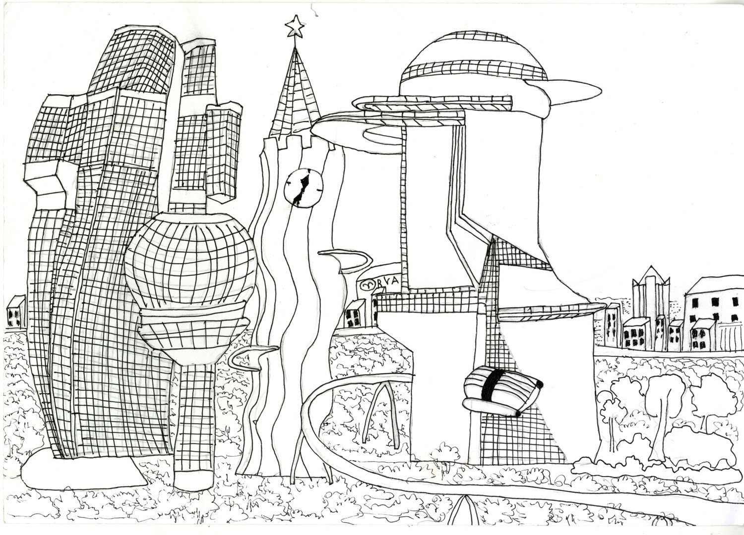Город будущего карандашом легкий