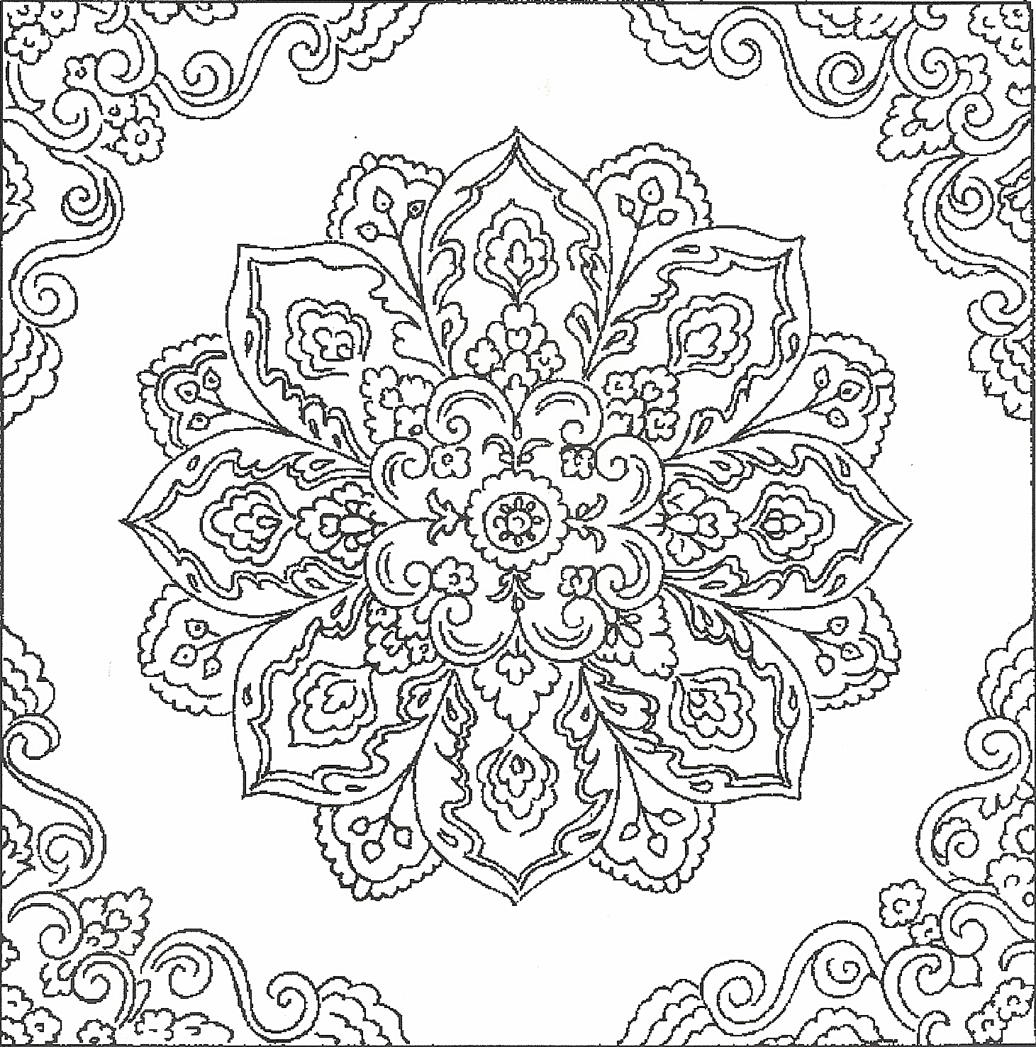 Узоры павлопосадских платков для раскрашивания