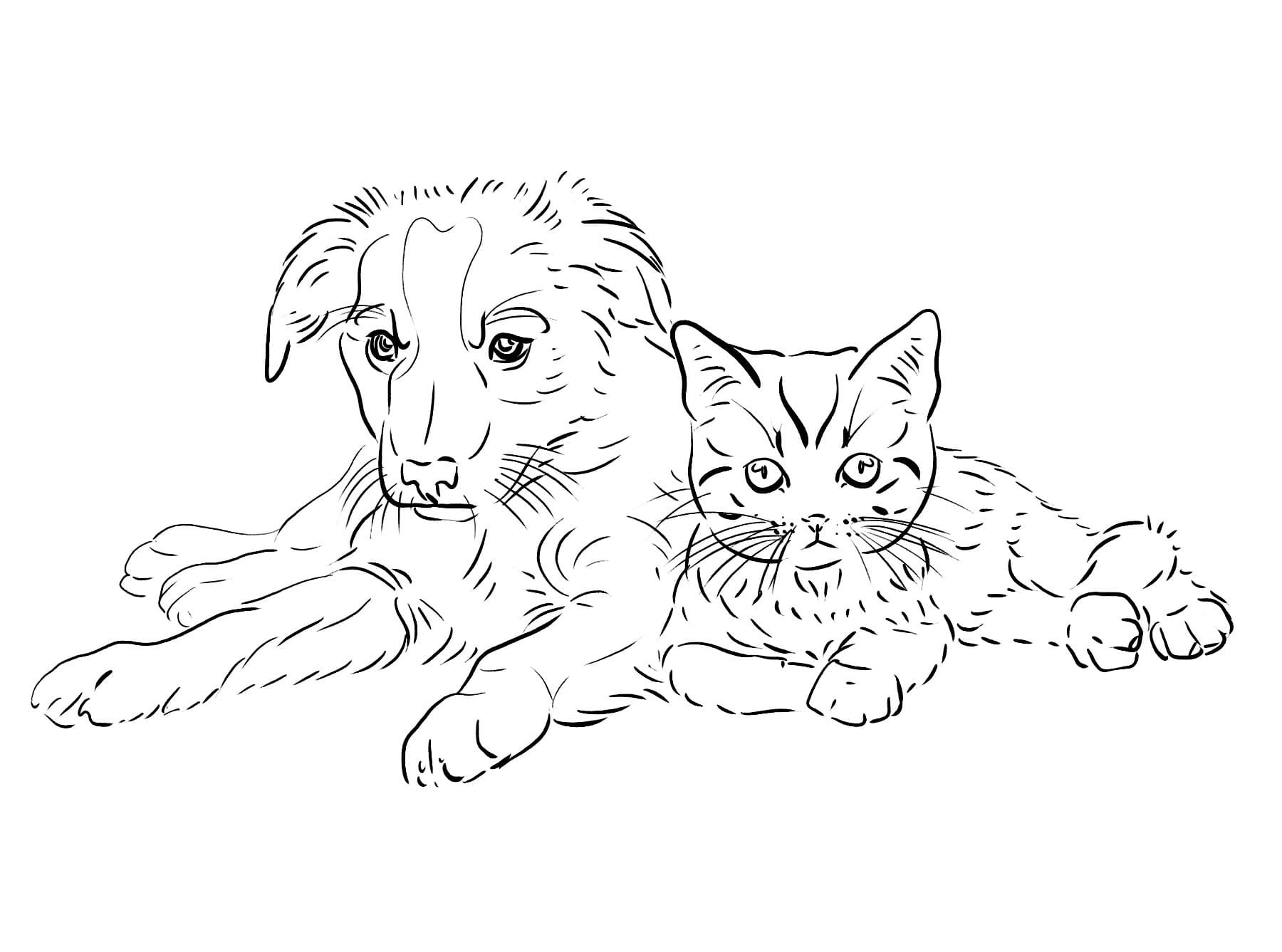 Раскраска Cat and Dog