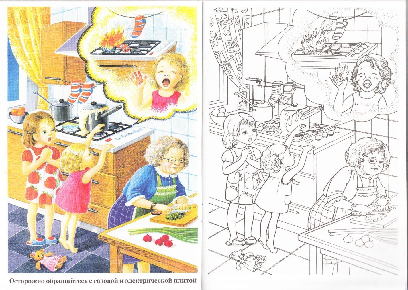 Раскраска безопасность на кухне