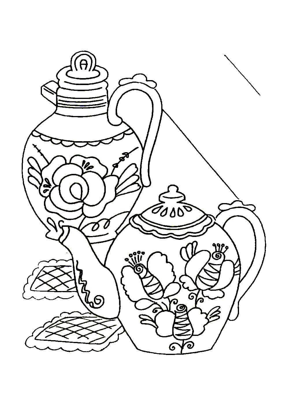 Гжель раскраски для детей посуда