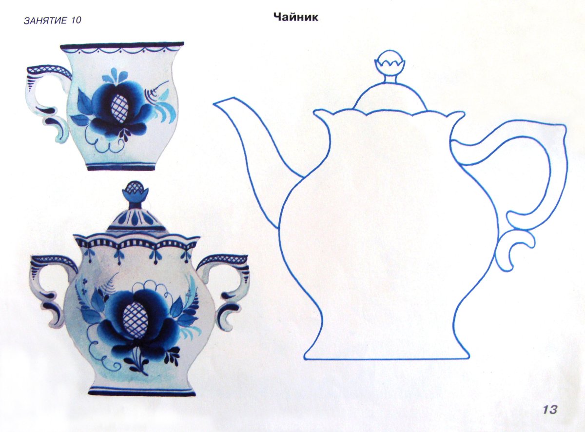 Шаблон чайника для росписи Гжель для детей