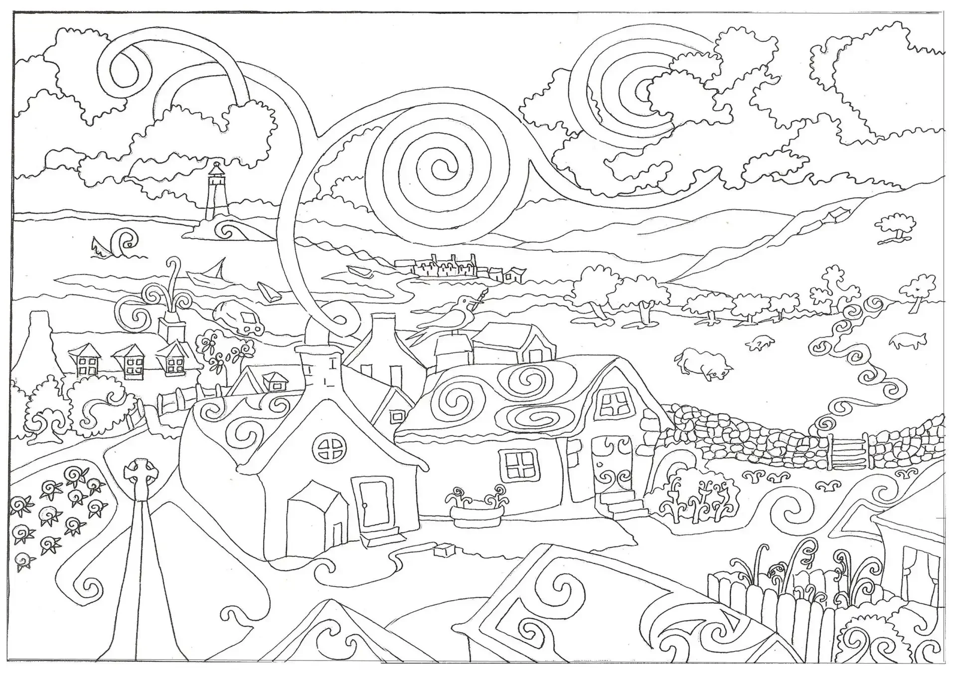Раскраски для взрослых деревня