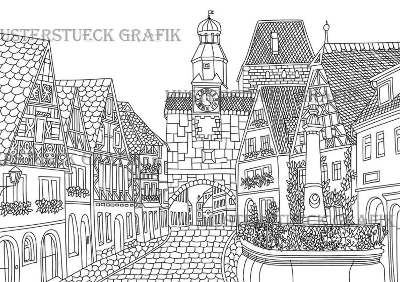 Раскраска антистресс сказочный город