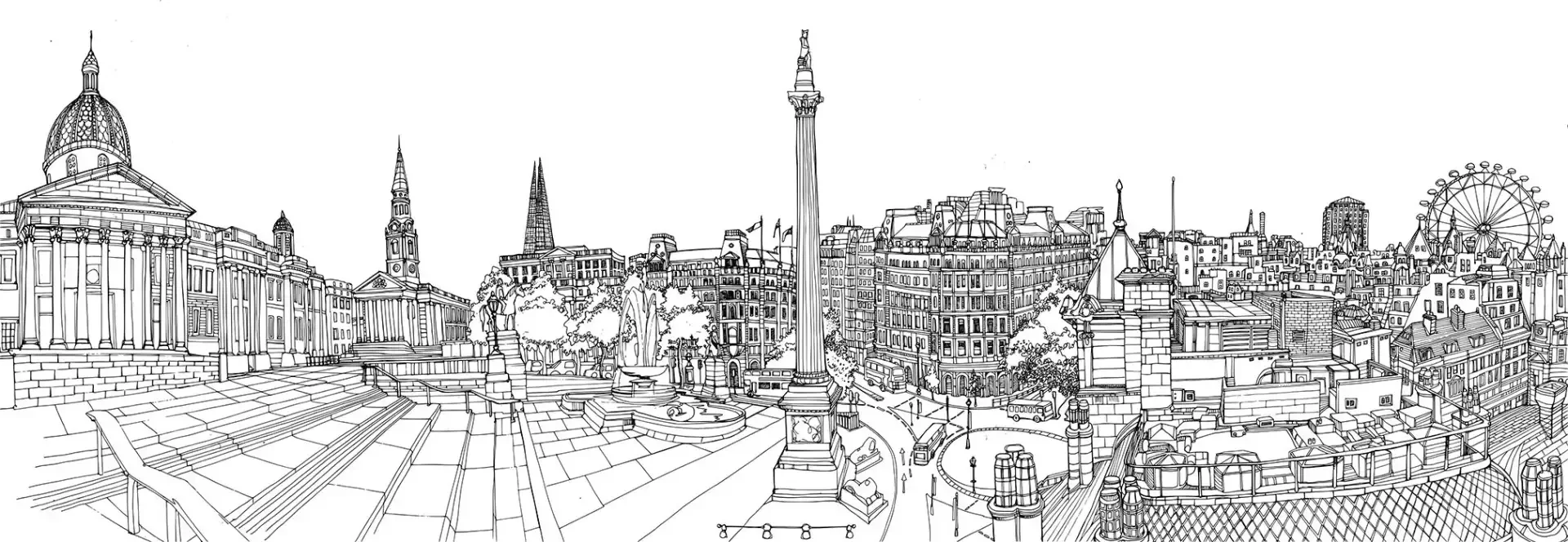 Трафальгарская площадь в Лондоне панорама