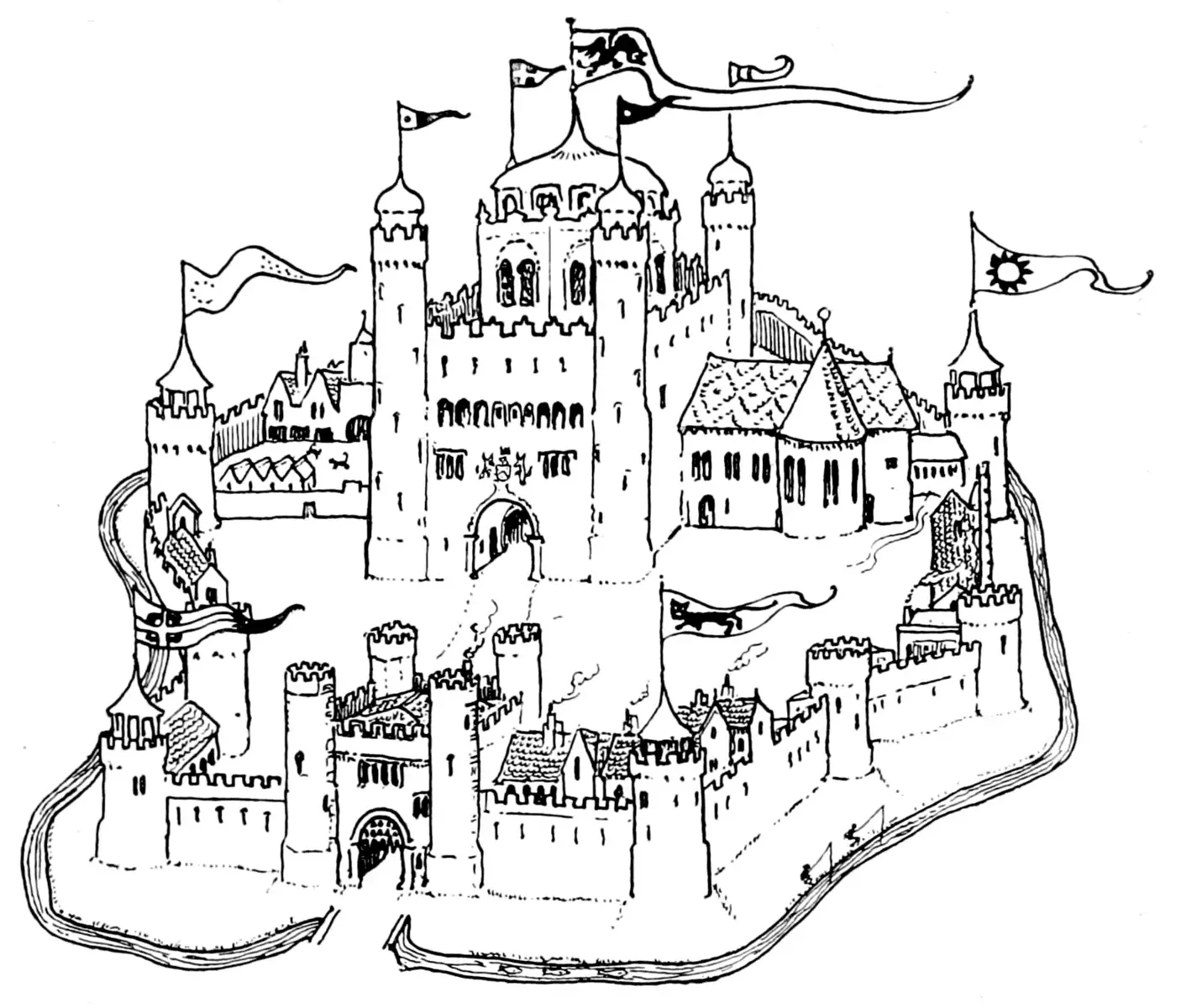 Средневековый замок раскраска