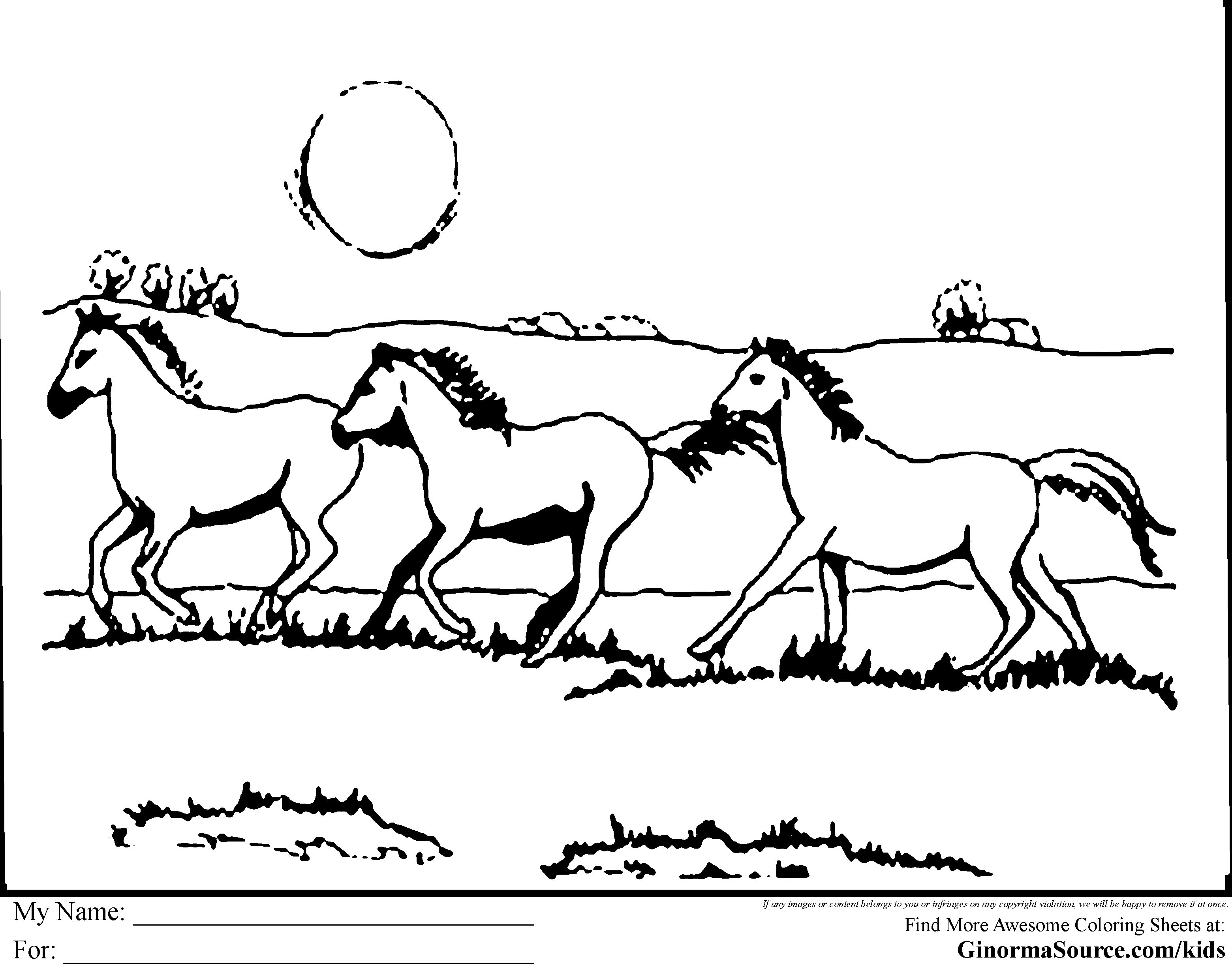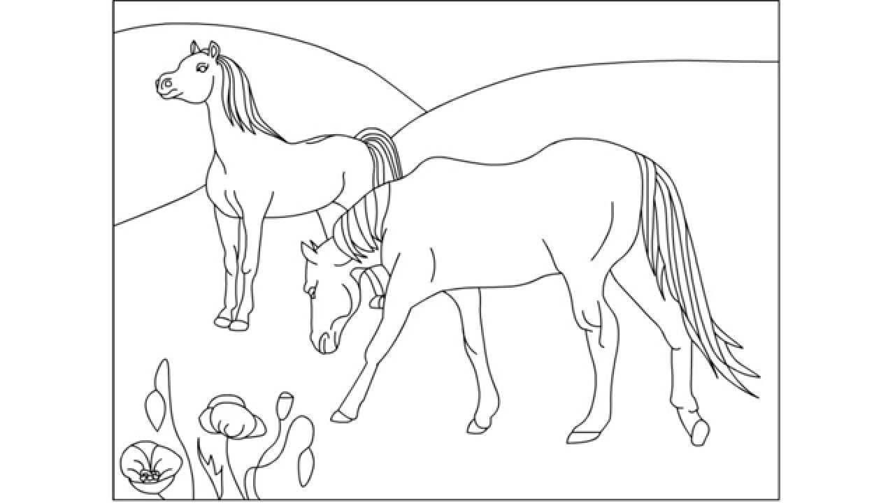 Стадо лошадей раскраска