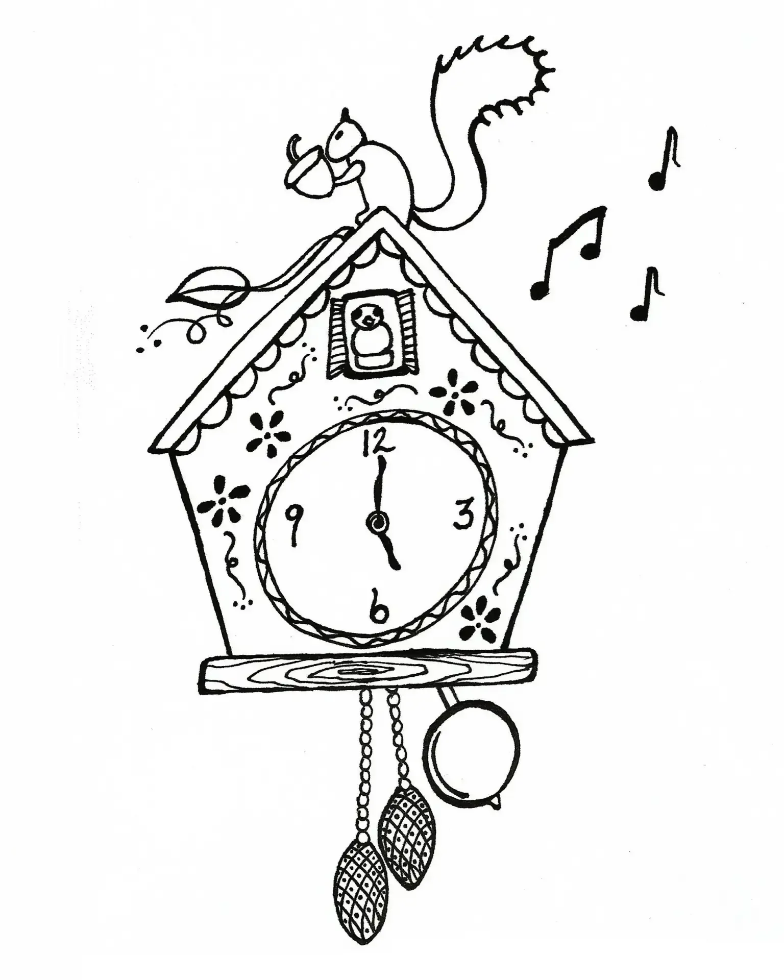 Раскраска часы с кукушкой