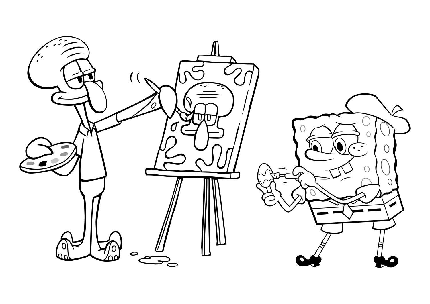 Раскраска губка Боб Сквидвард