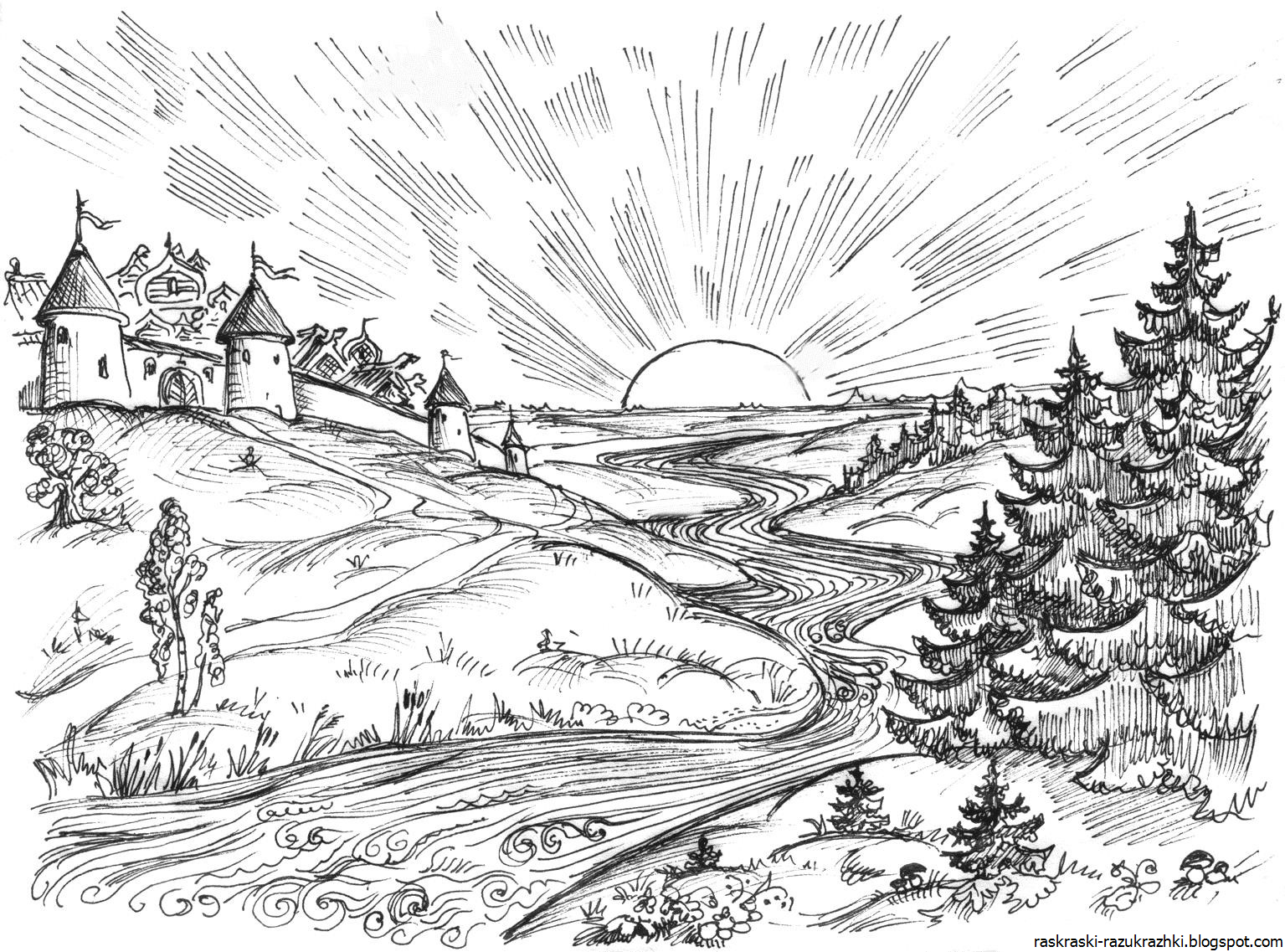 Сказочный город раскраска для детей