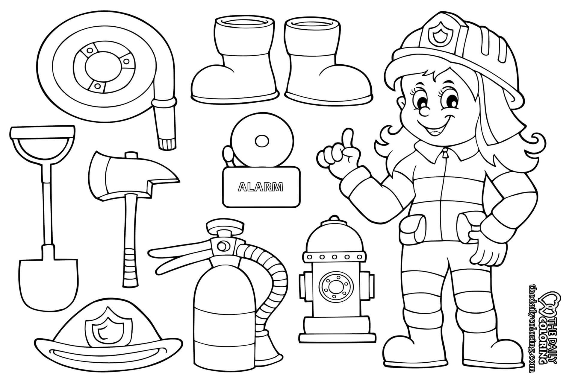 Пожарный инвентарь для детей в картинках для раскрашивания