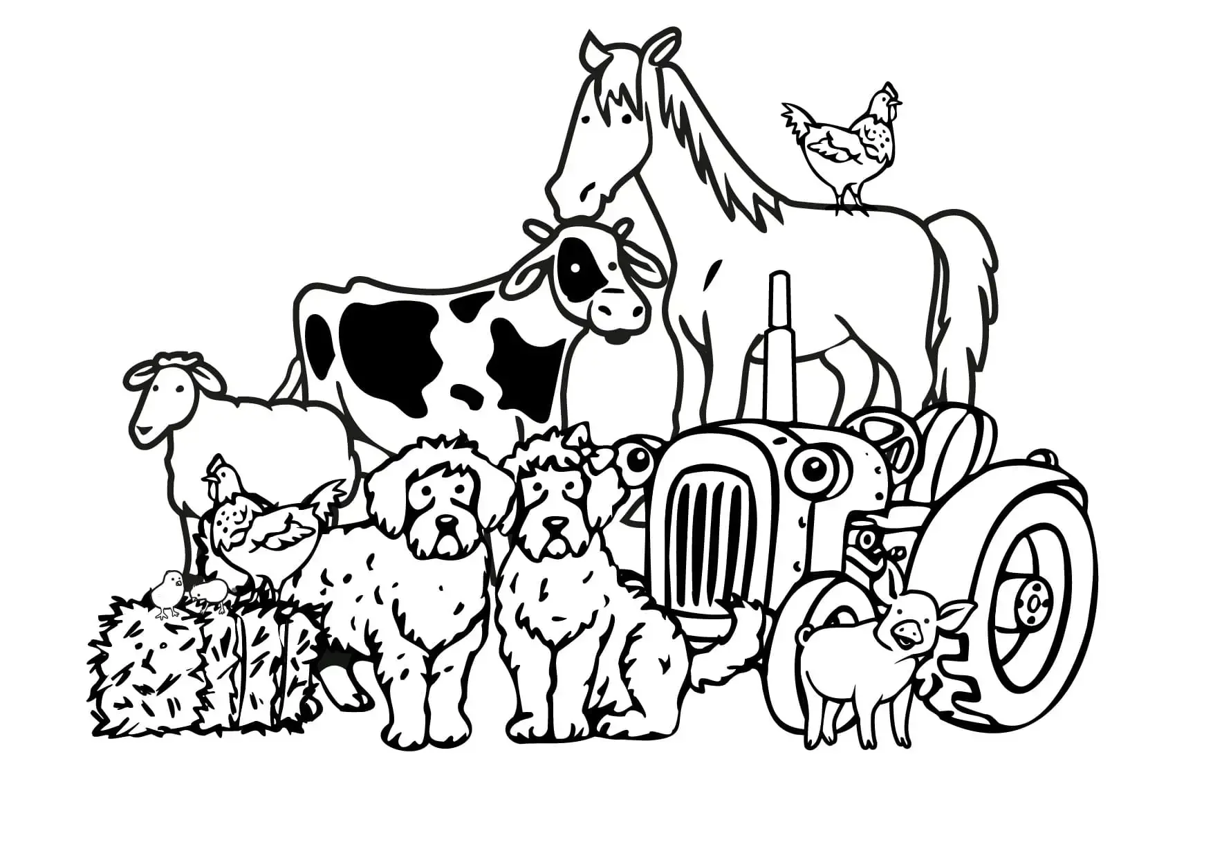 Раскраска ферма с домашними животными