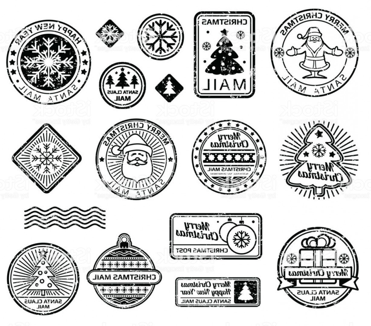 Новогодние марки черно белые