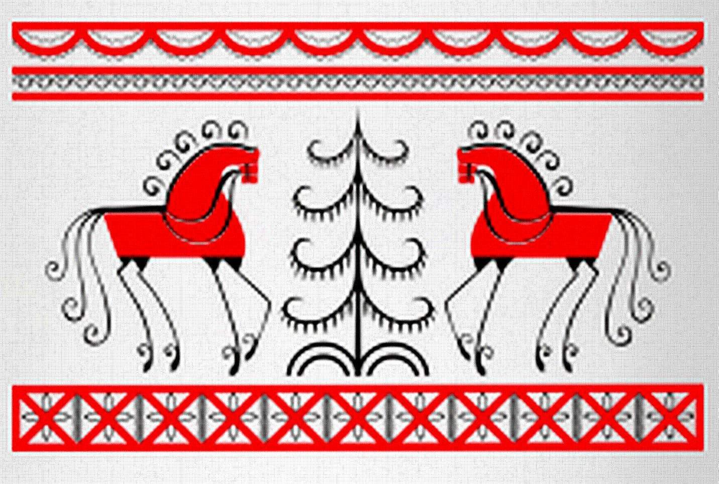Красный конь в мезенской росписи