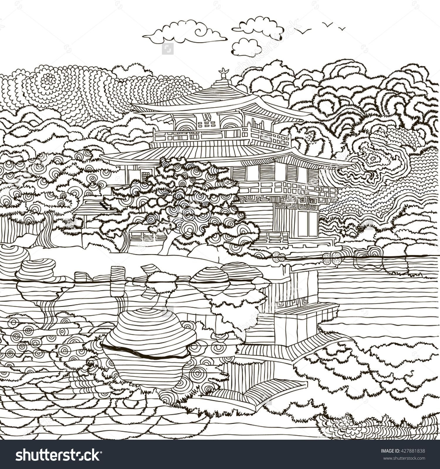 Японский сад раскраска