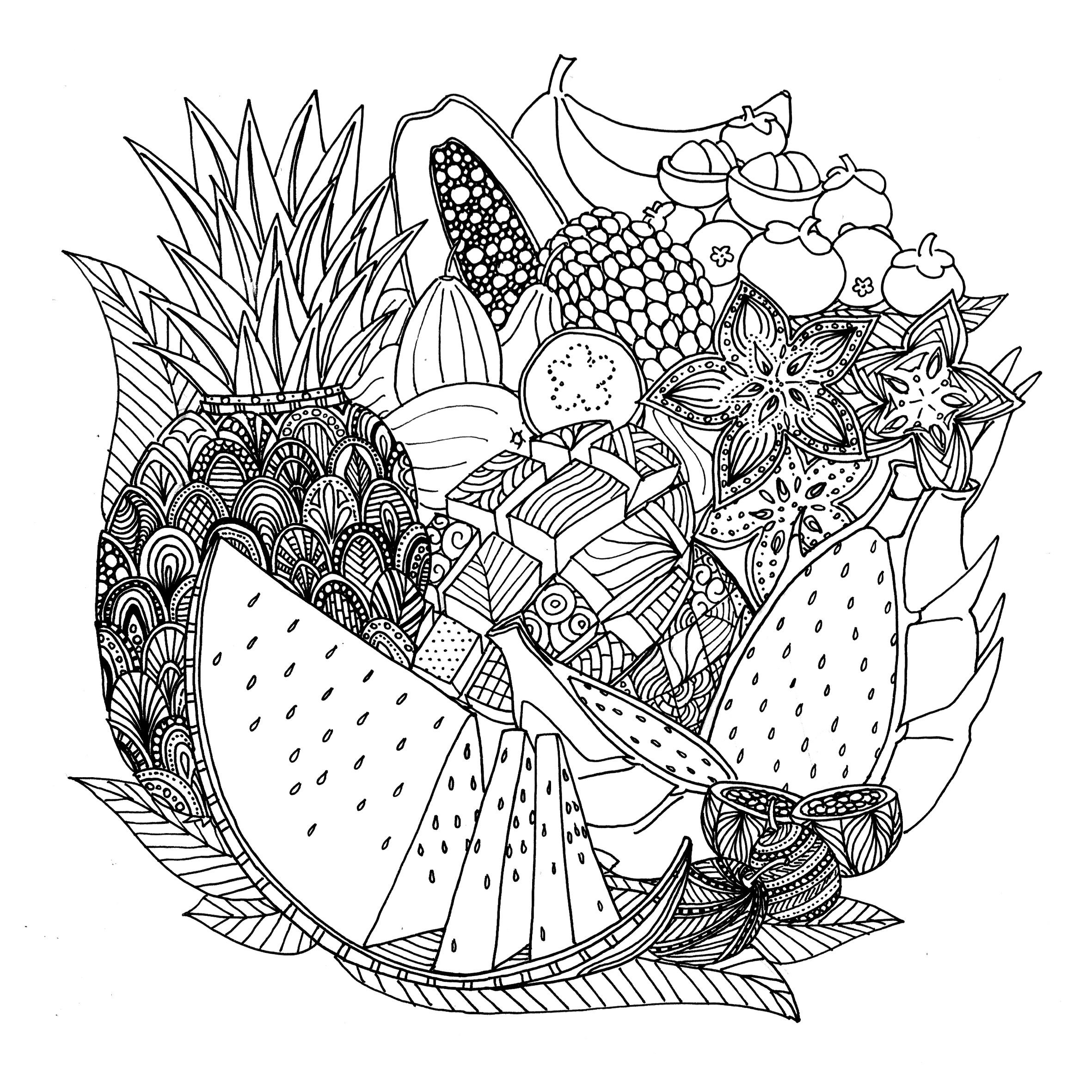 Раскраска антистресс для взрослых фрукты
