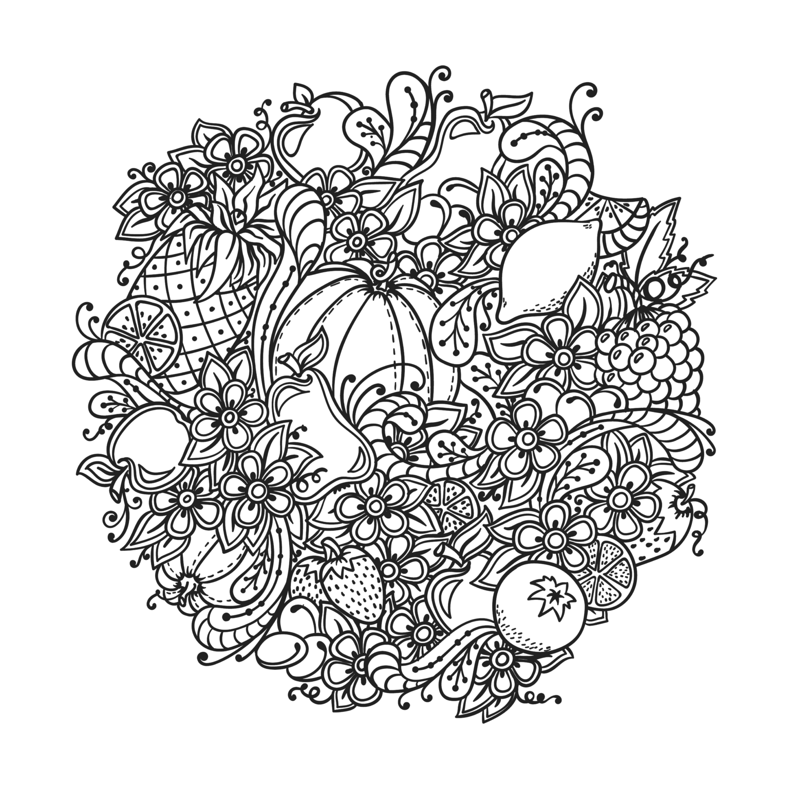 Дудлинг фрукты раскраска