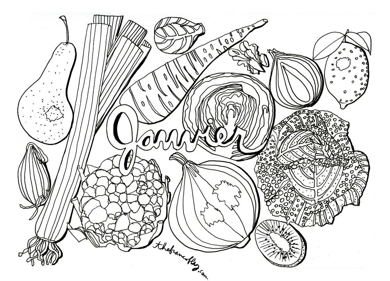 Раскраска антистресс фрукты и овощи