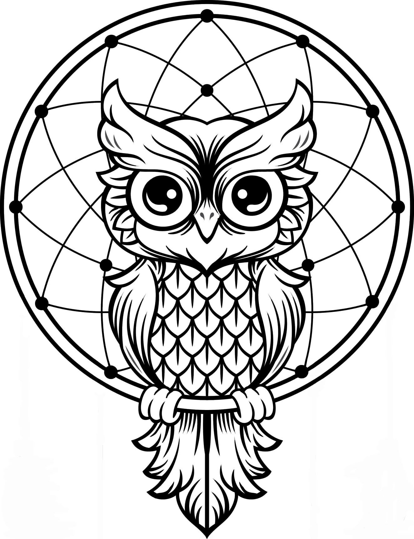 Мандула раскраска Сова