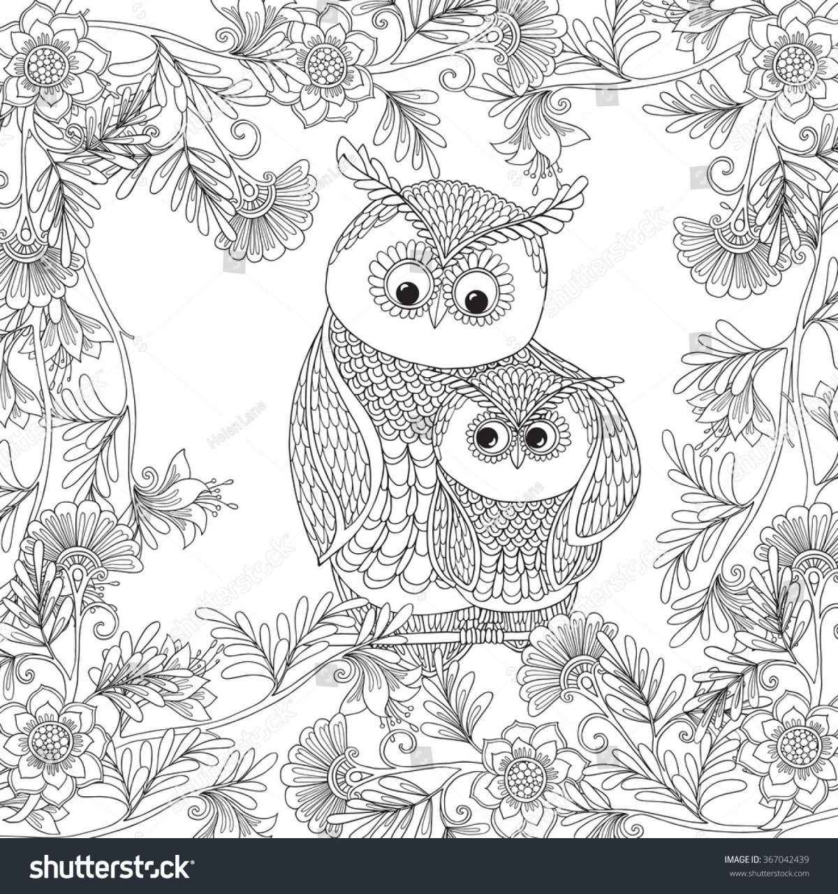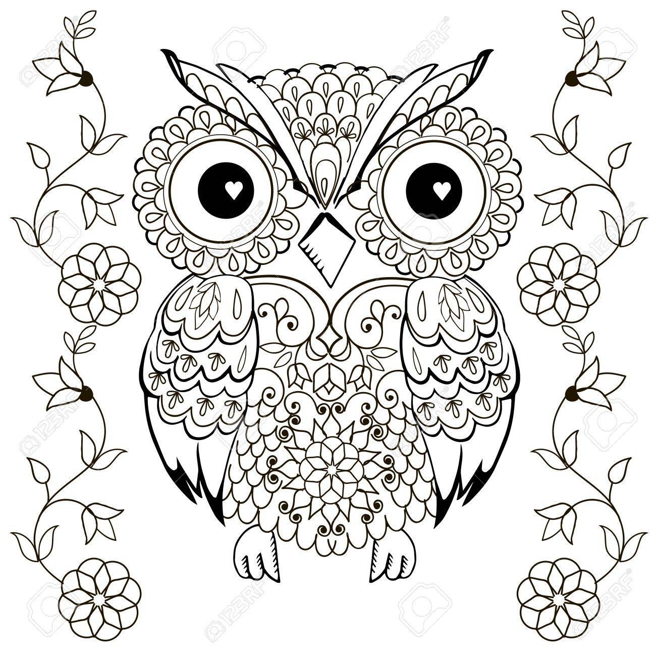 Раскраски дудлинг животные Сова