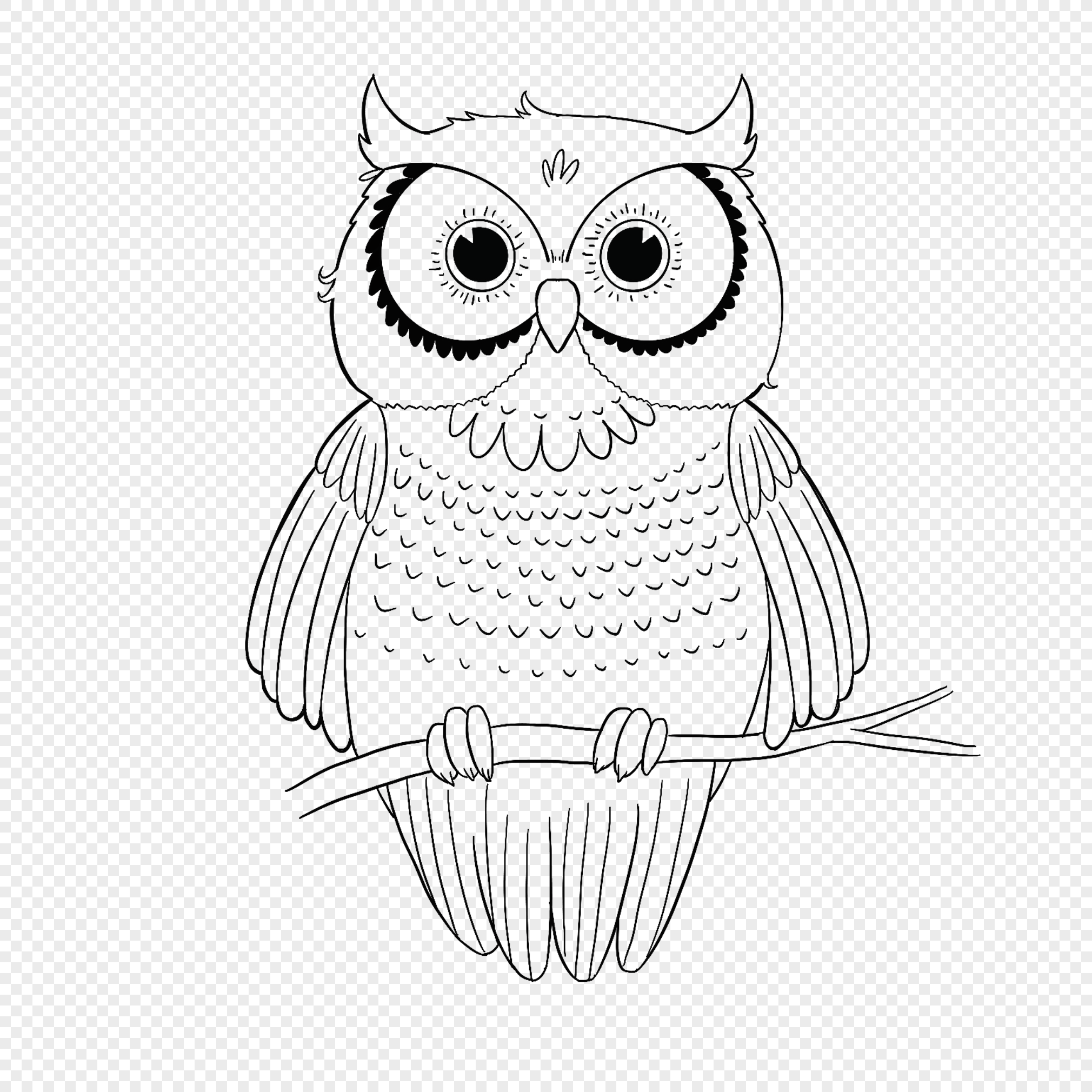 Сова раскраска для детей на прозрачном фоне