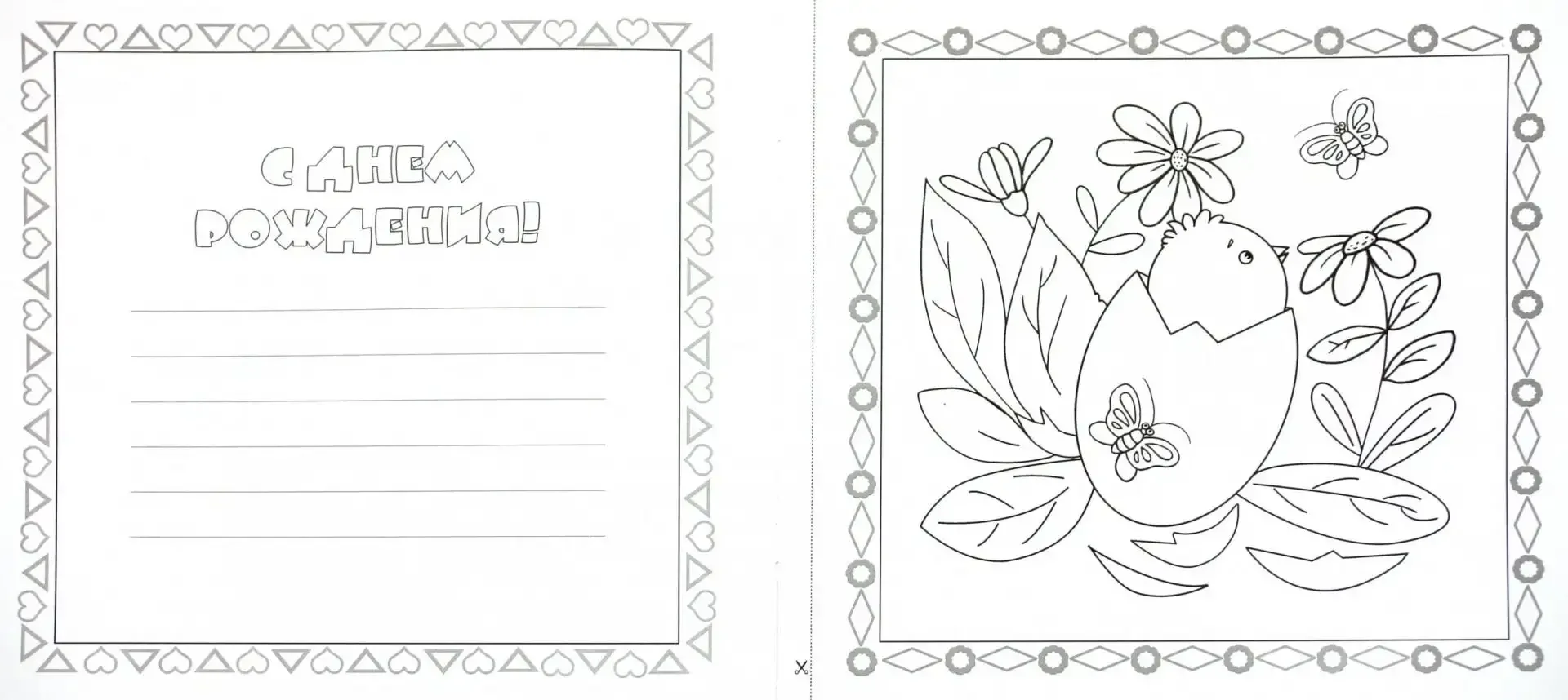 Открытка раскраска с днем рождения