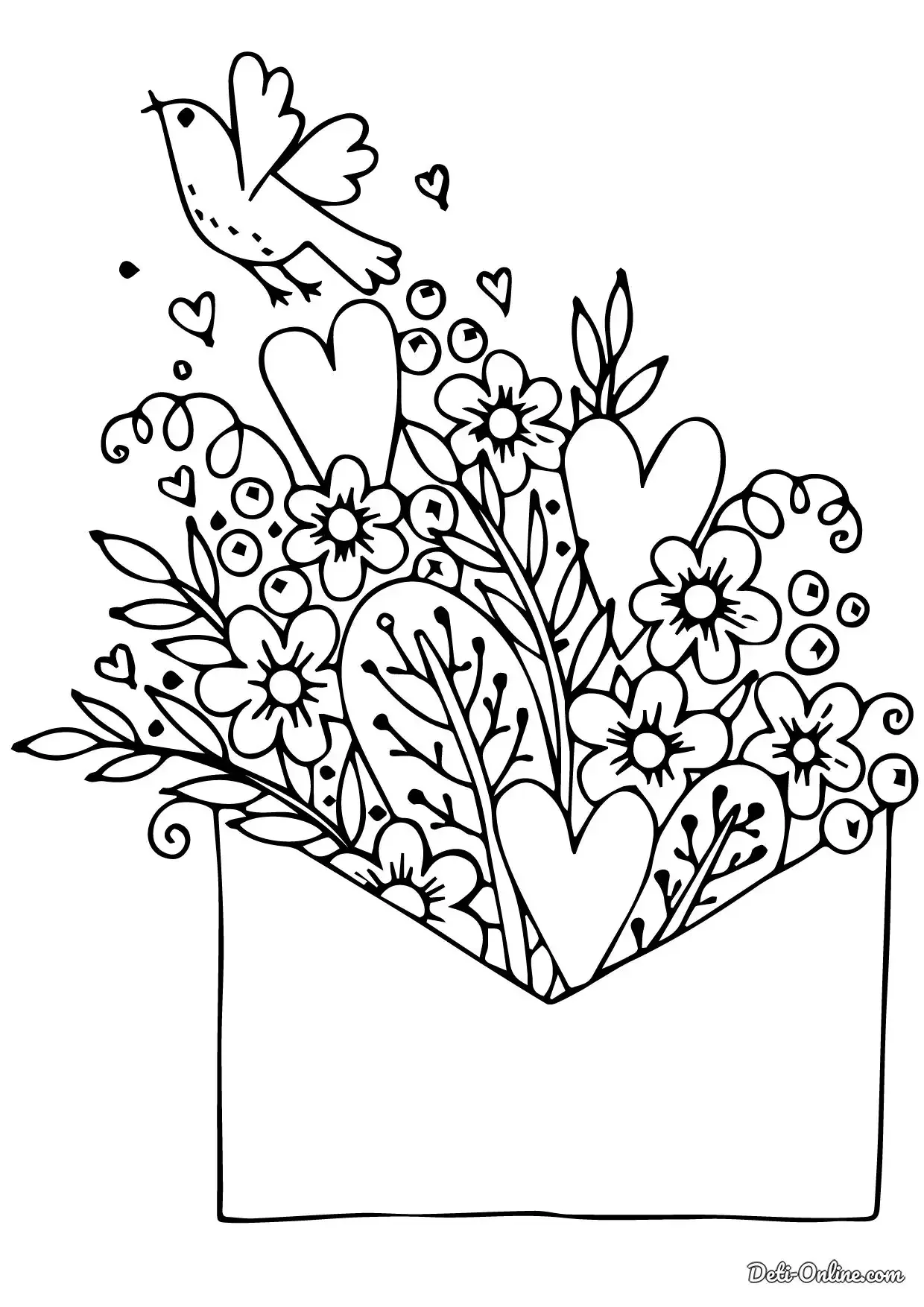 Сердечко с цветами раскраска