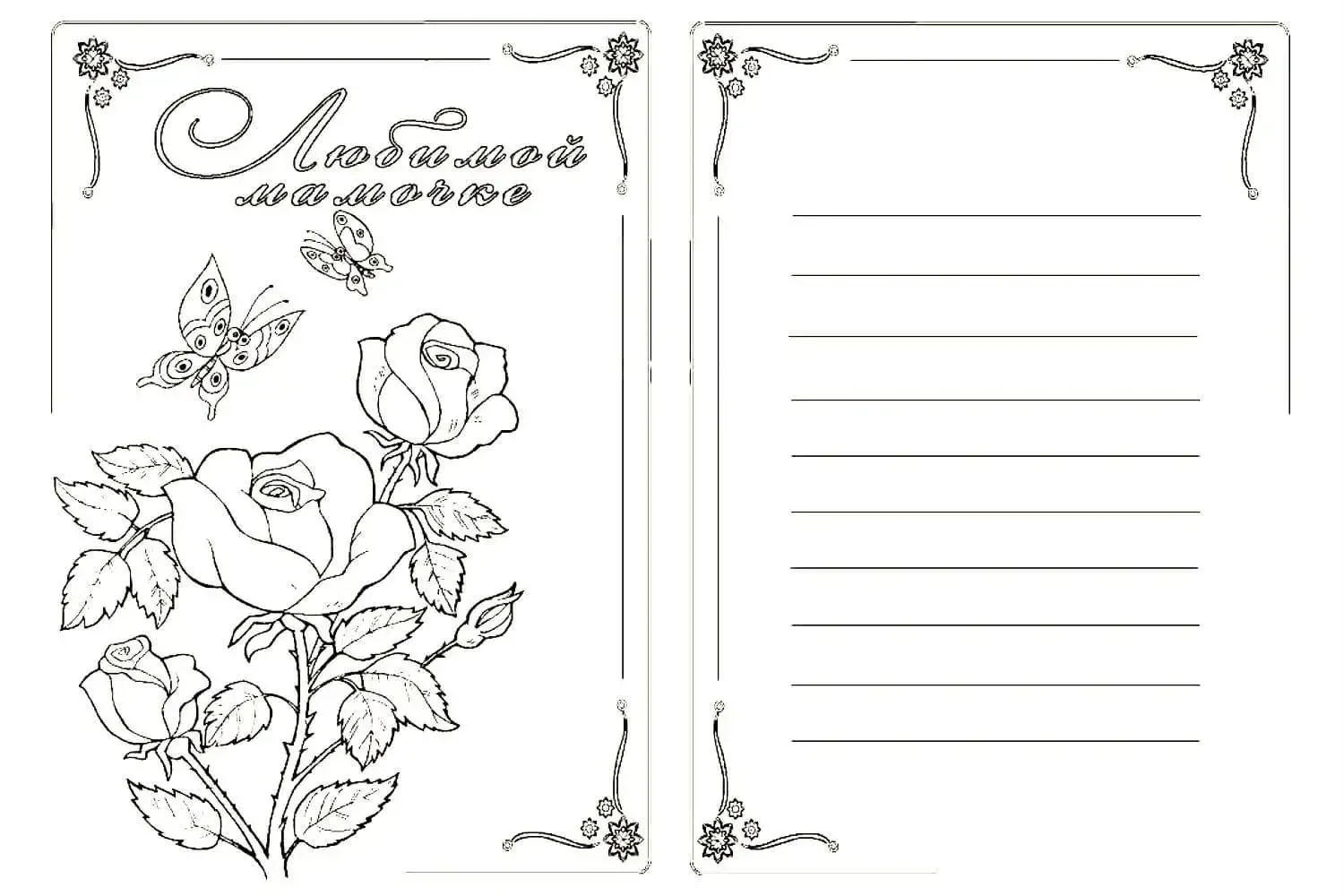 Открытка для мамы раскраска