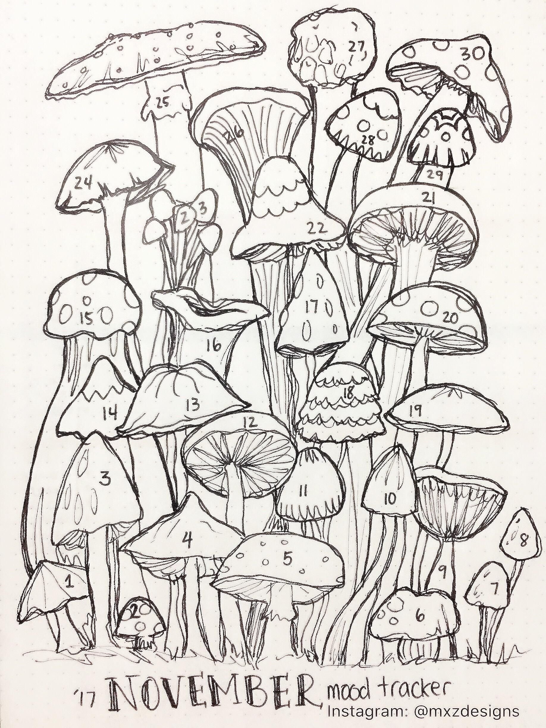 Грибы зарисовки для ежедневника