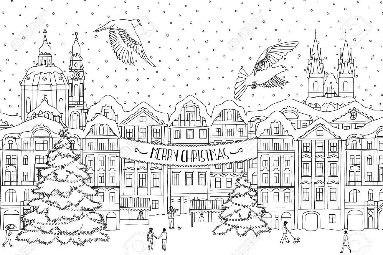 Раскраска зима в городе