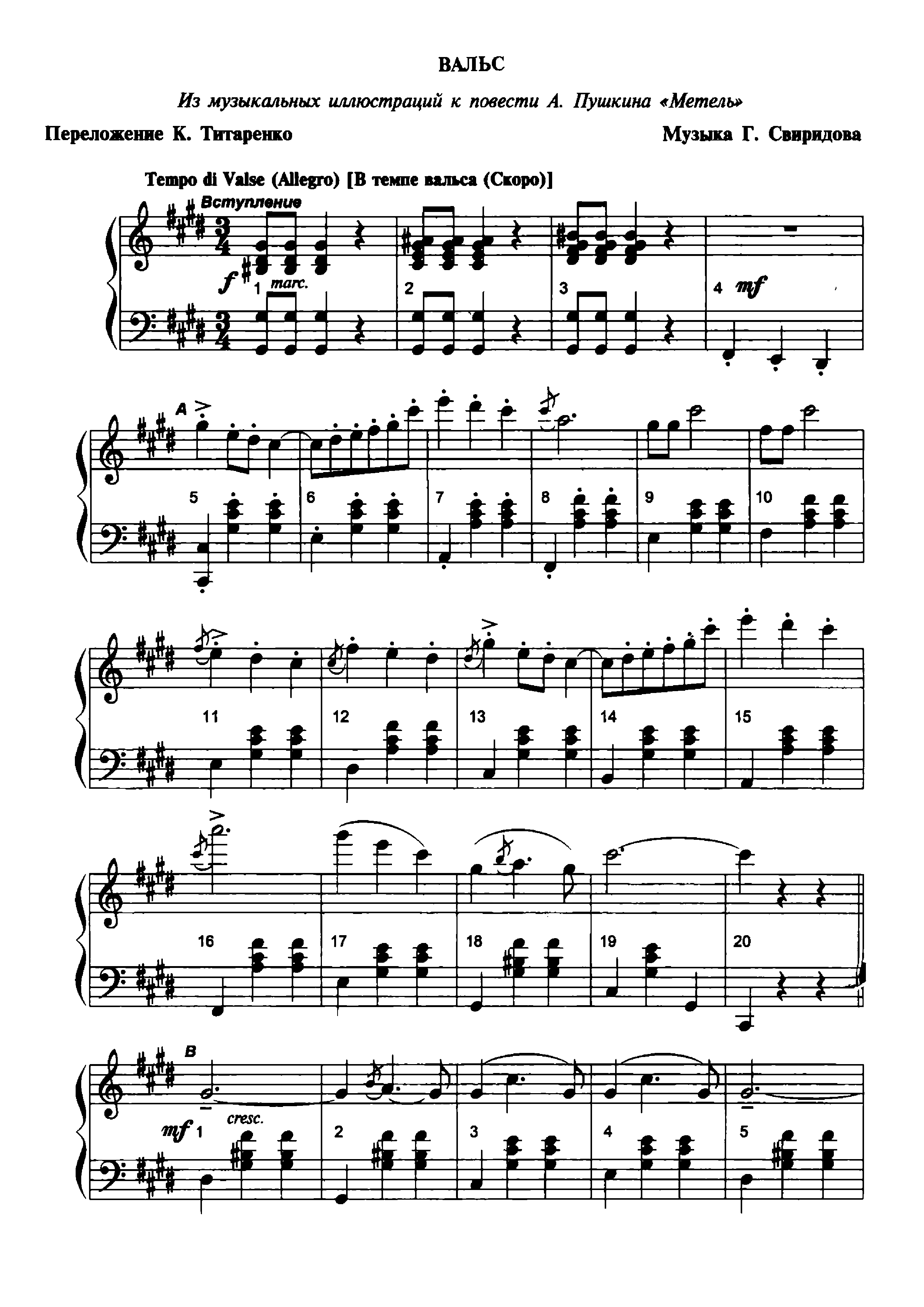 Свиридов вальс метель Ноты