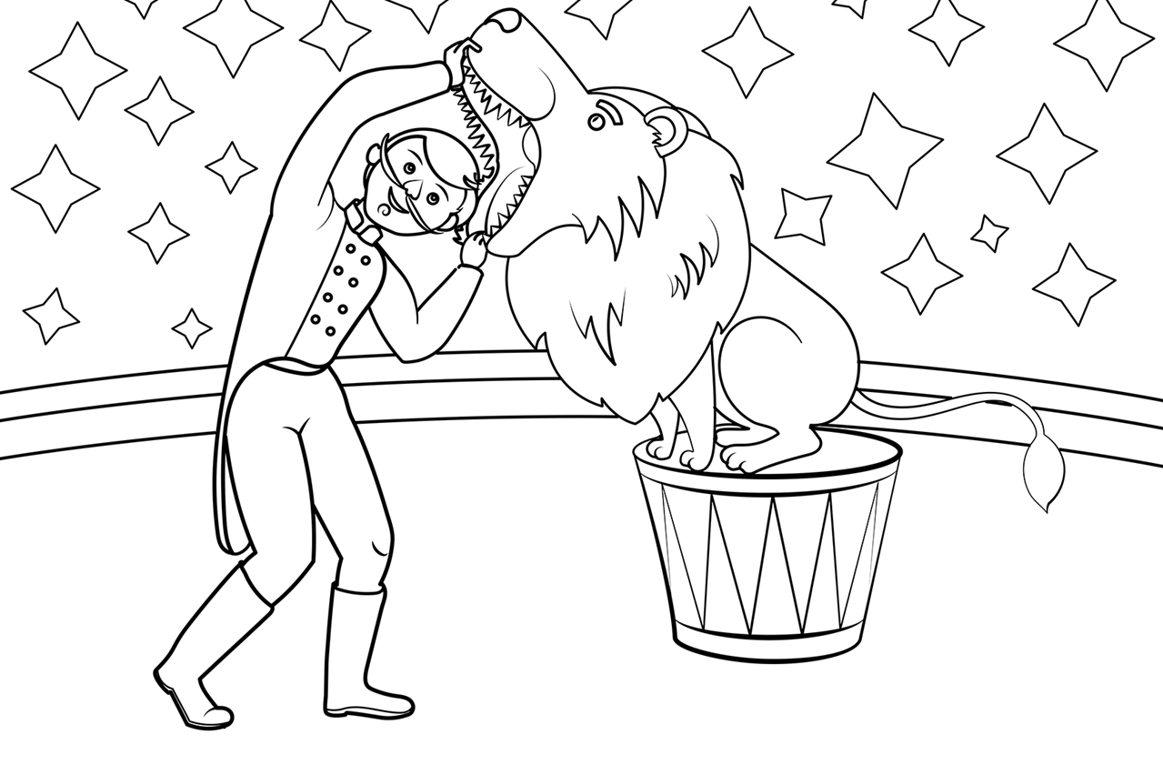 Раскраски цирк для детей дрессировщик
