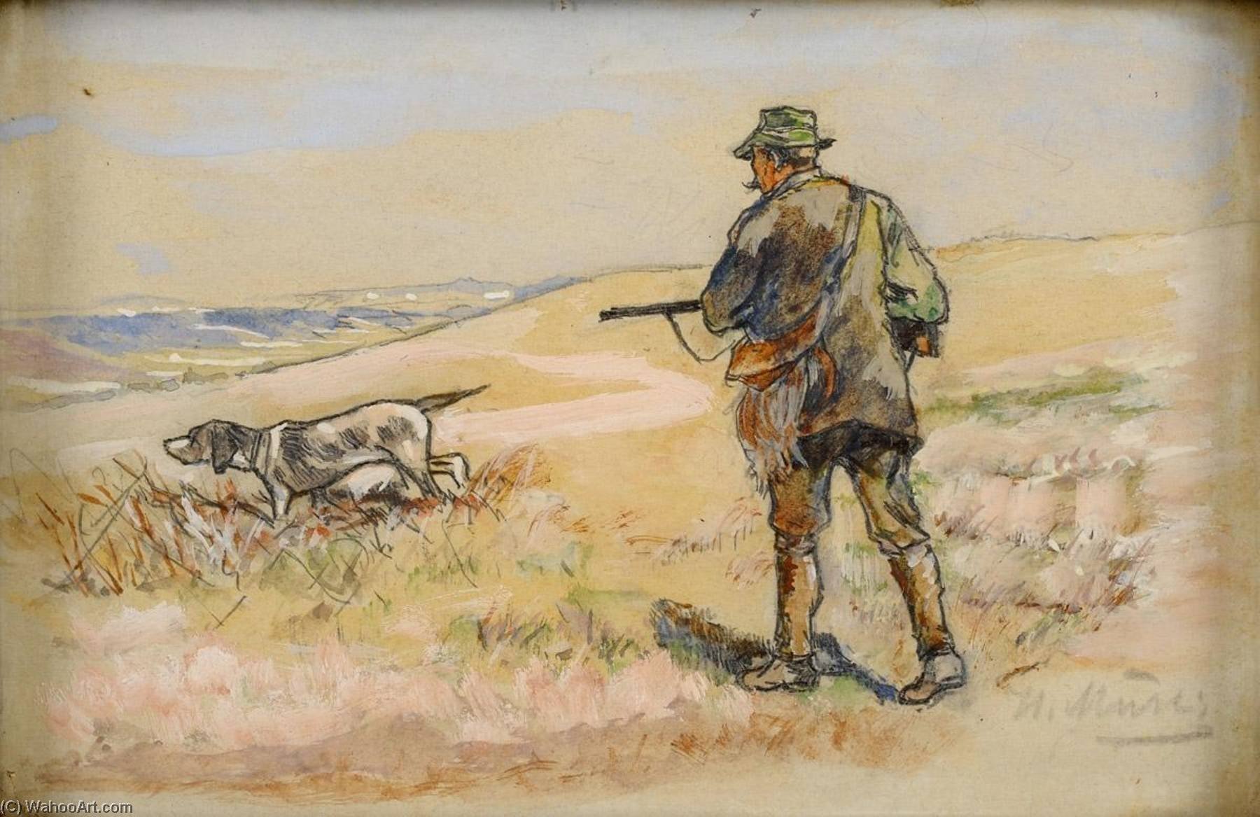 Нарисовать охотника с собакой