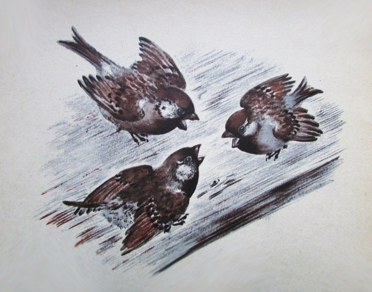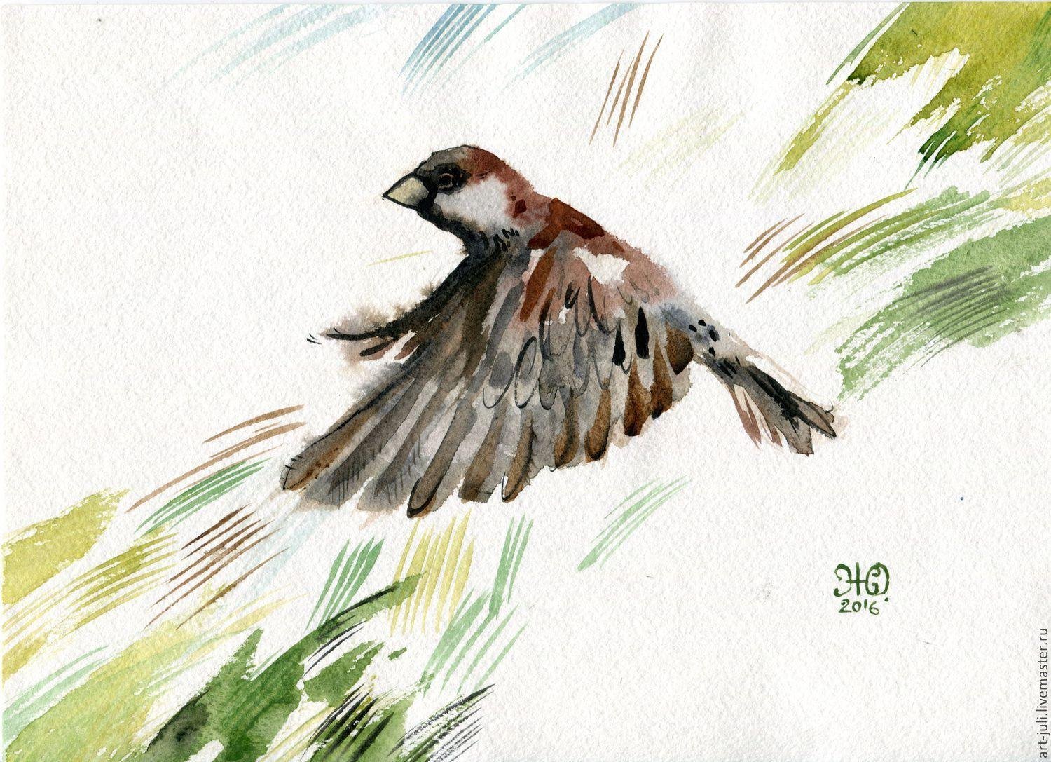 Воробьи в полете живопись