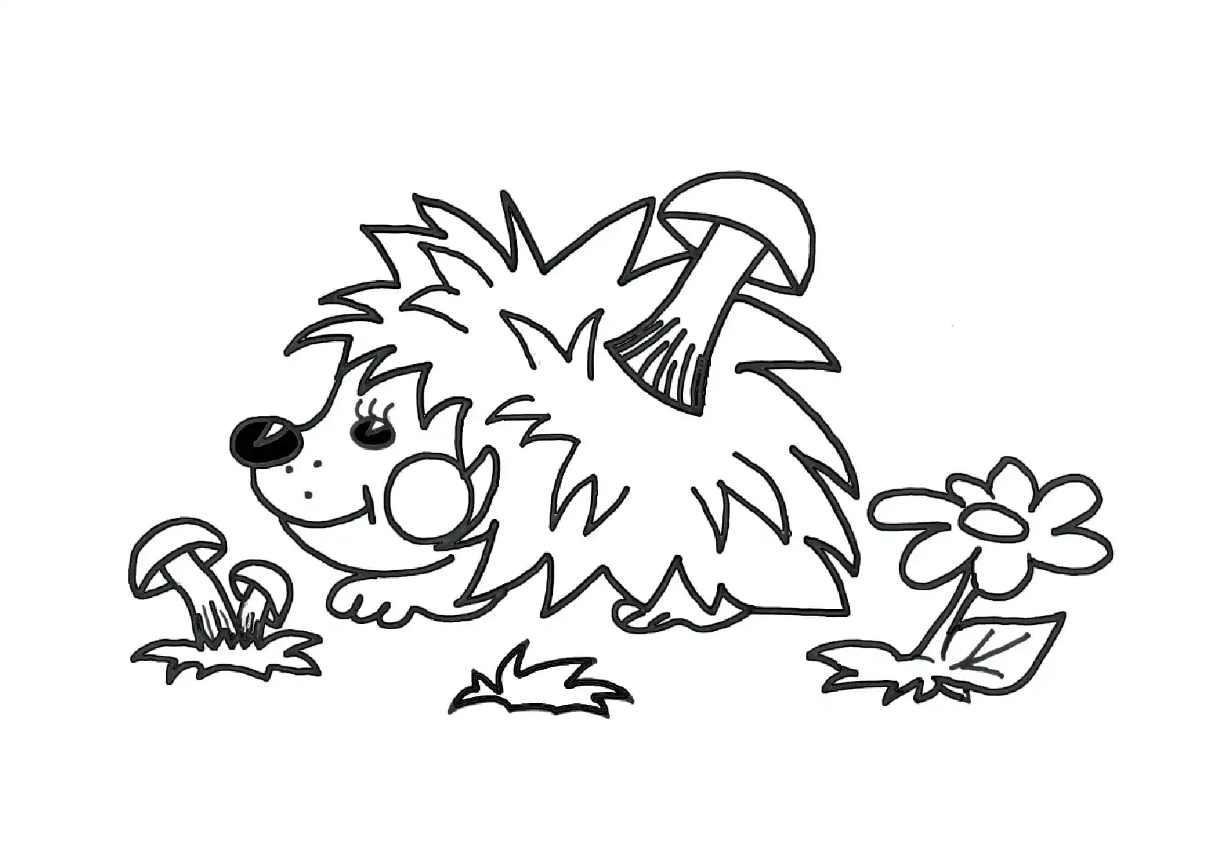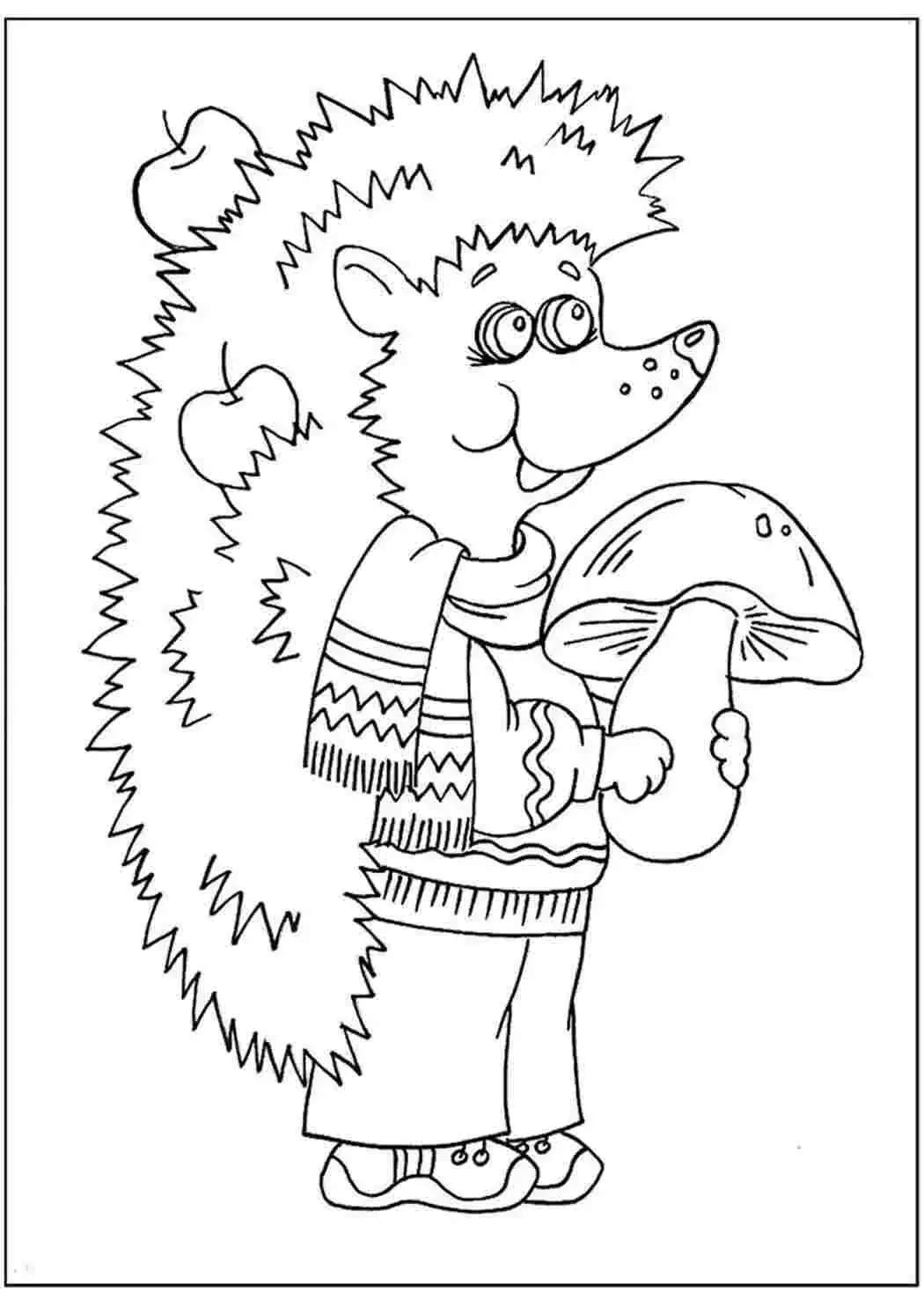 Ежик с грибами раскраска
