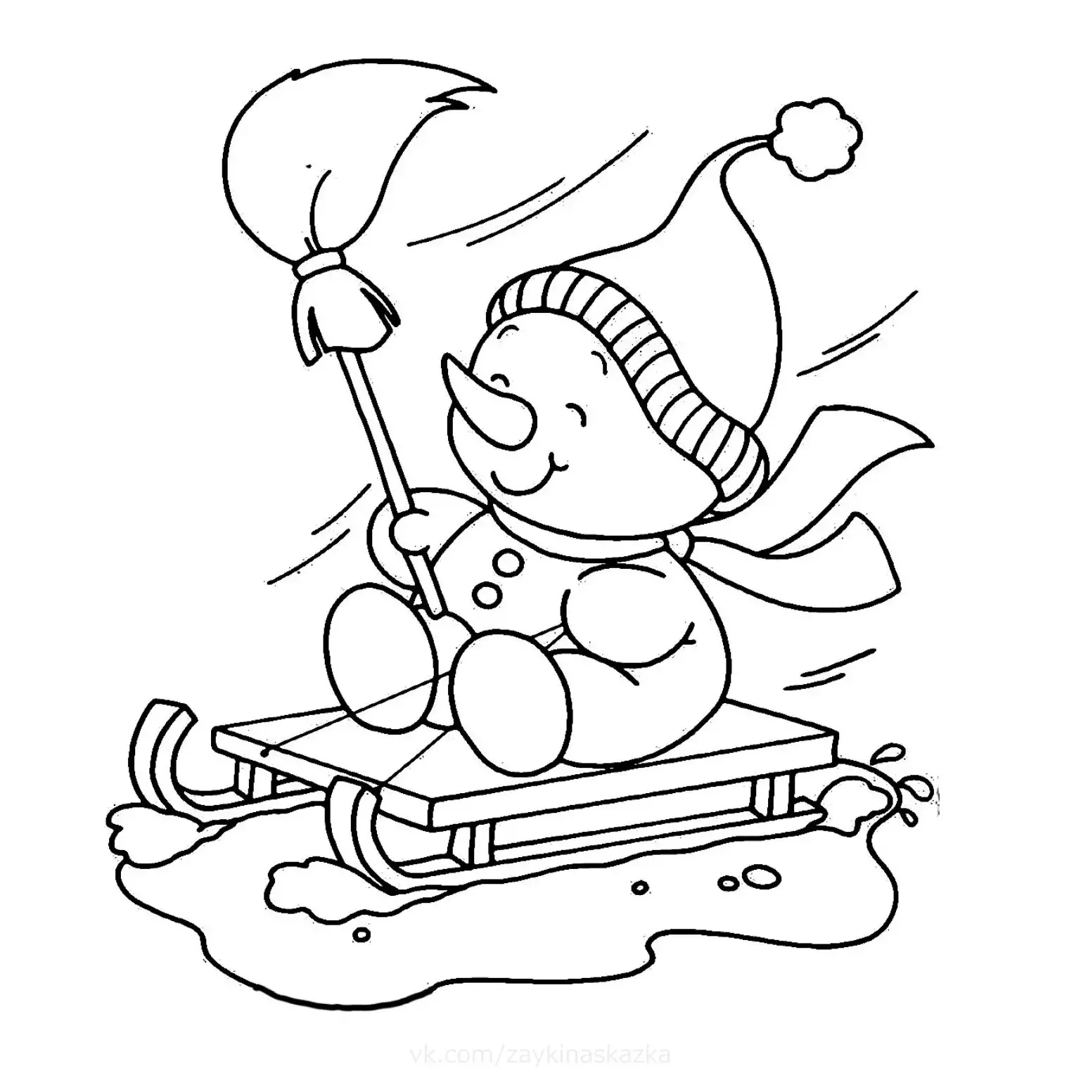 Снеговик на лыжах раскраска