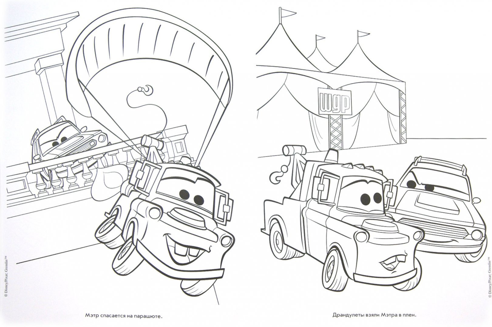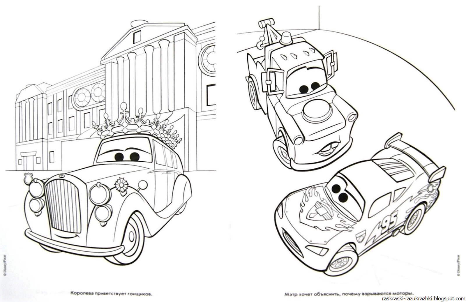 Машинки Тачки раскраска 2 листа