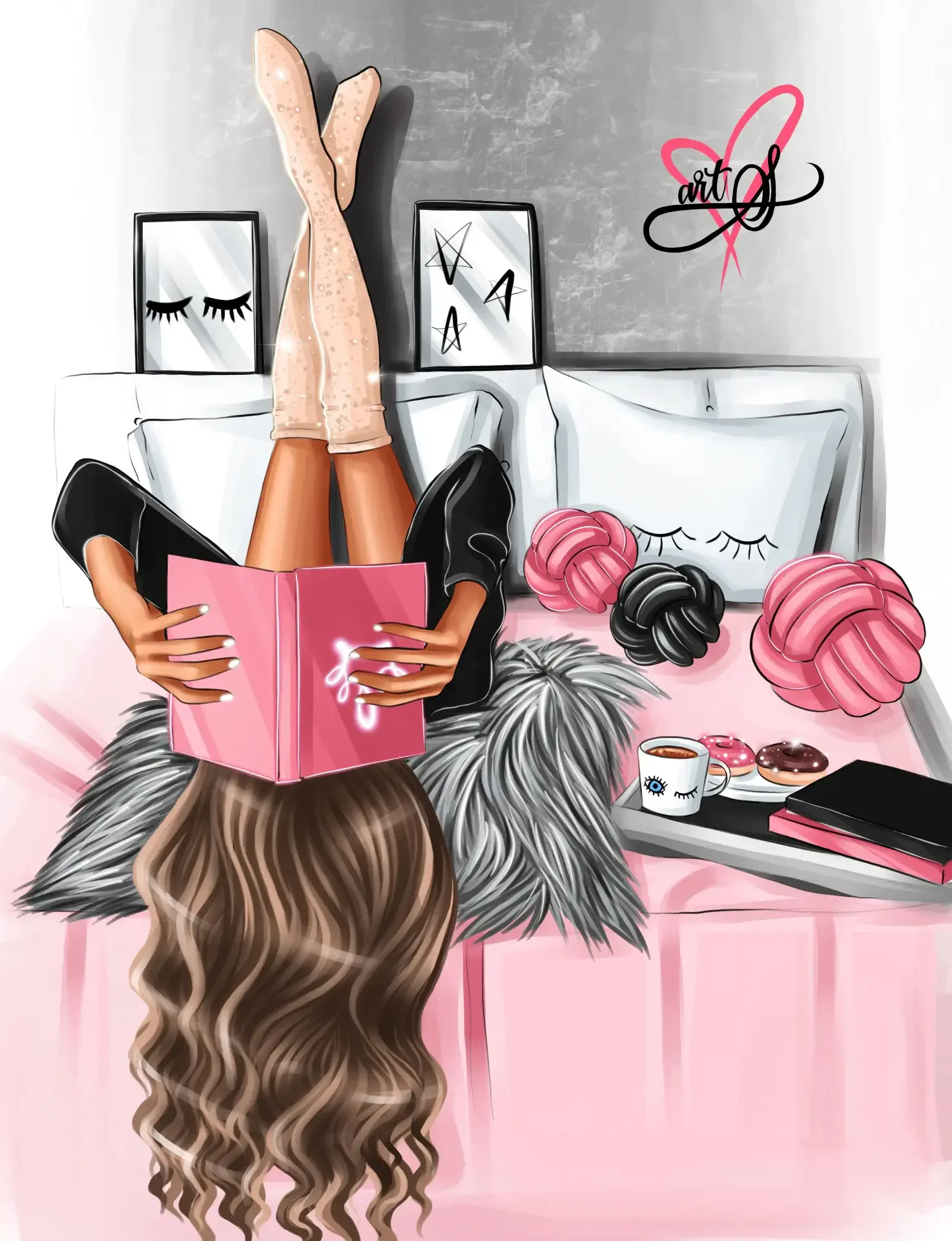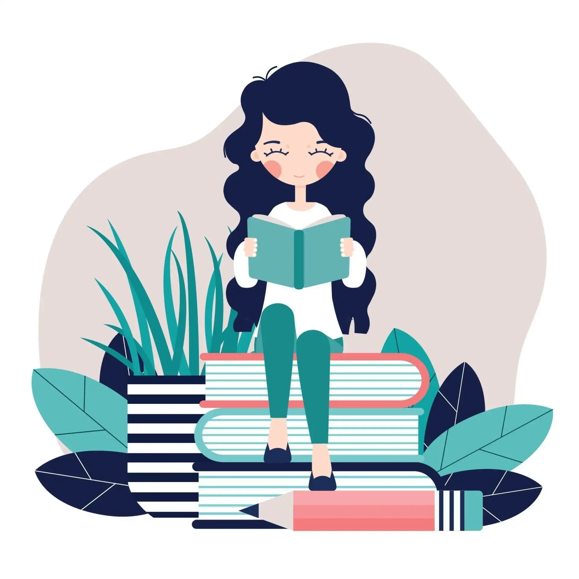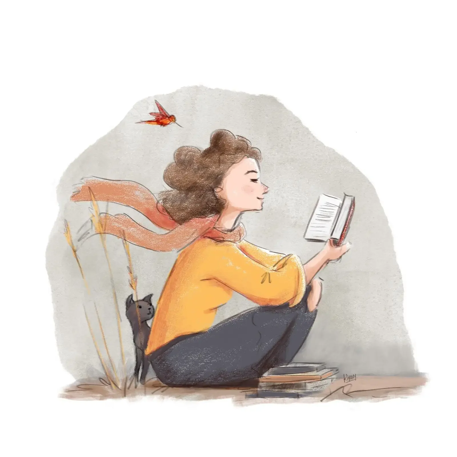 Уютные арты с книгами девушка