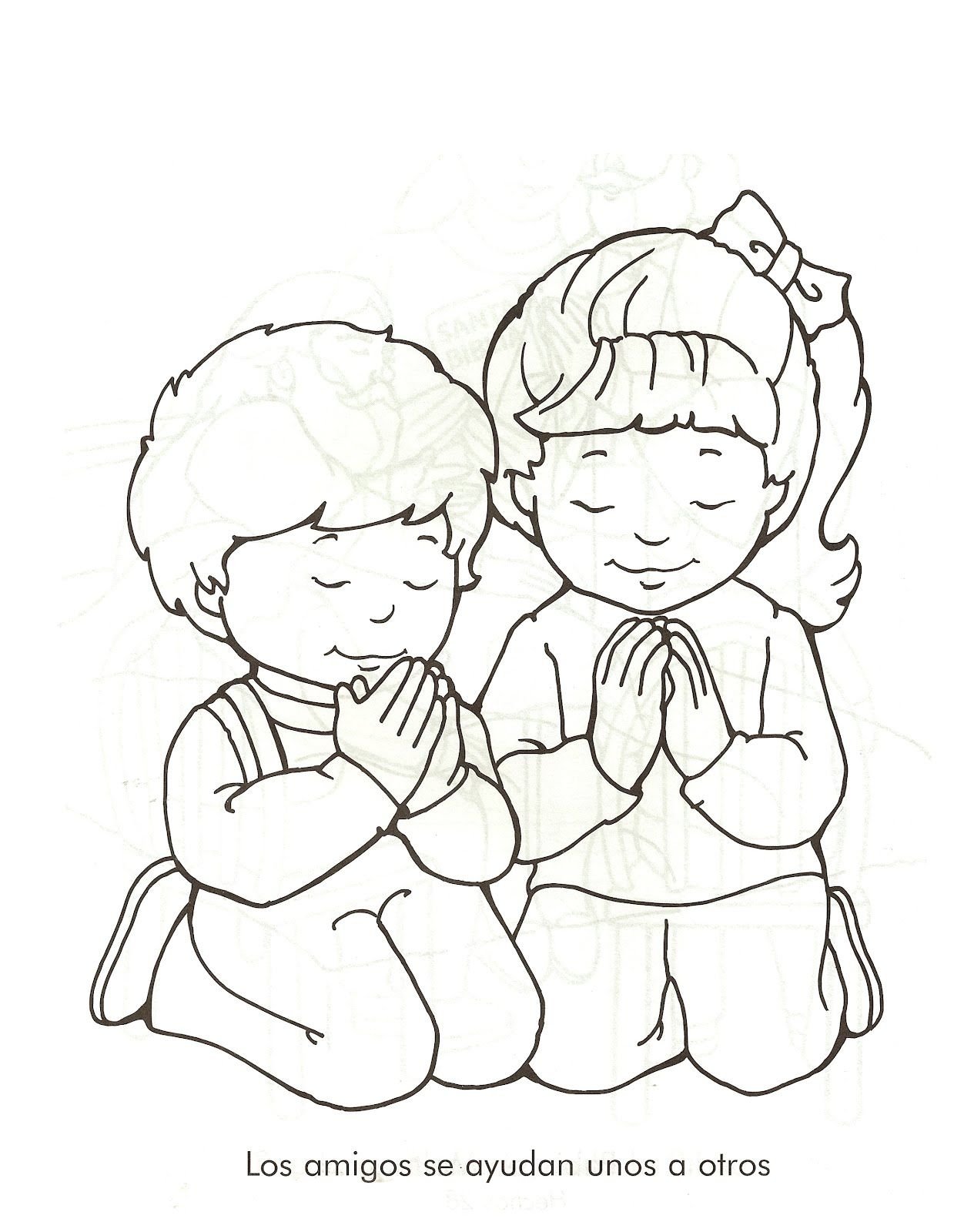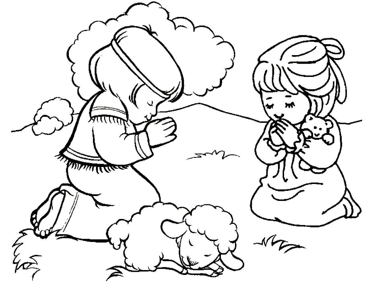 Дети молятся раскраска