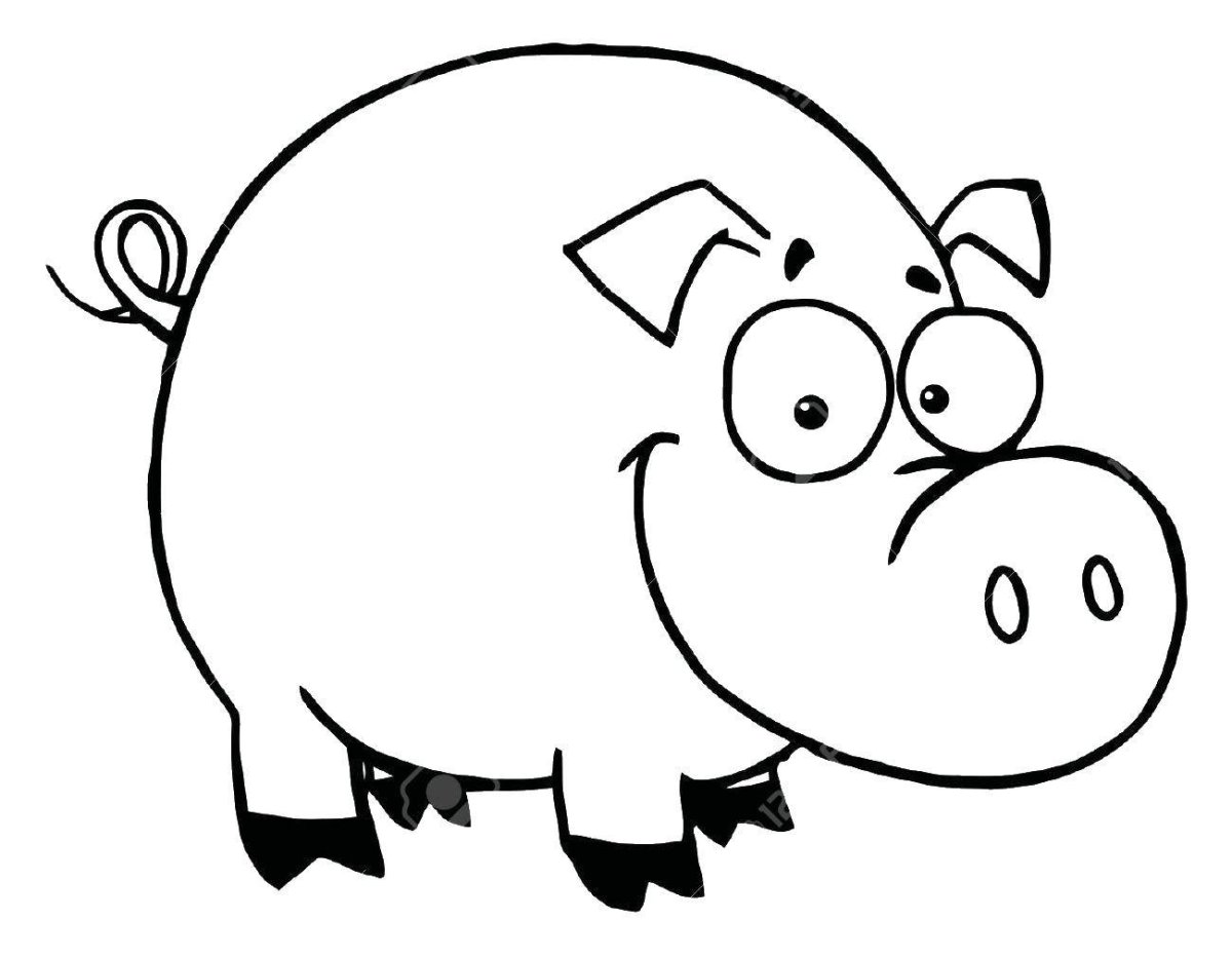 Поросенок картинка для детей черно белая