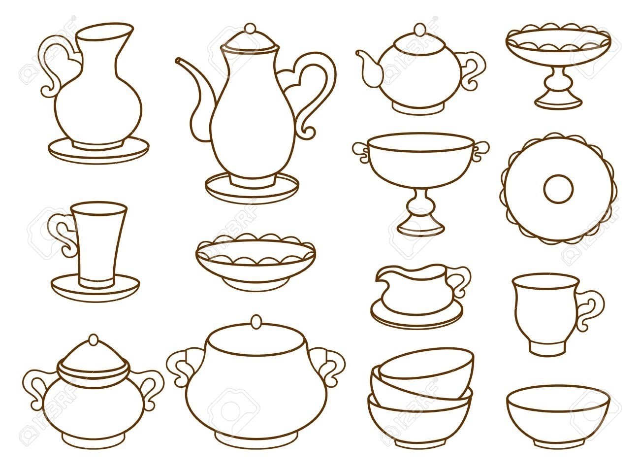 Посуда. Раскраска