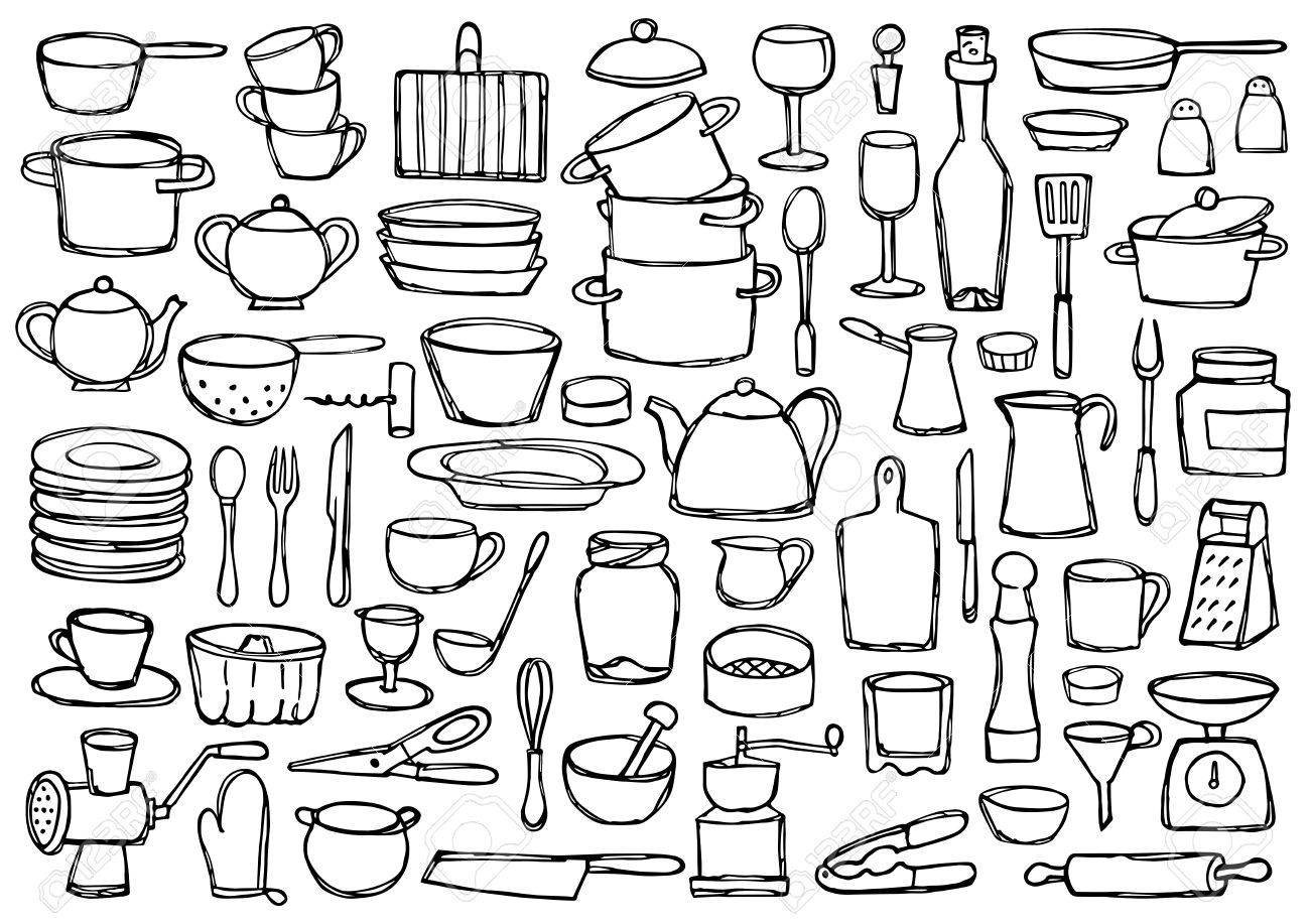 Кухонная посуда раскраска для детей