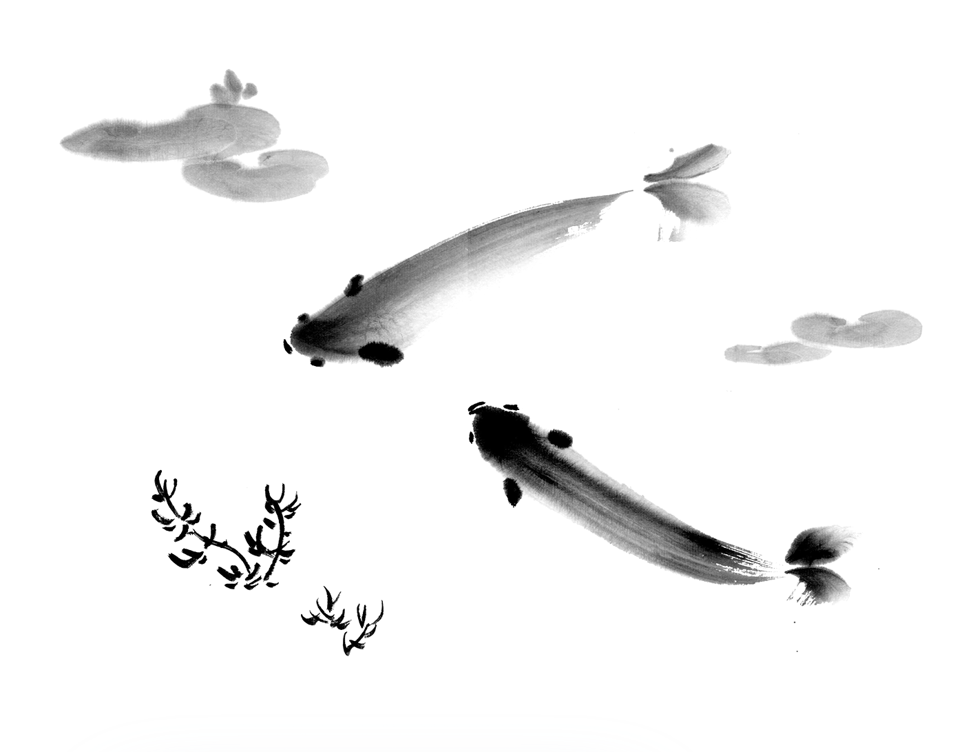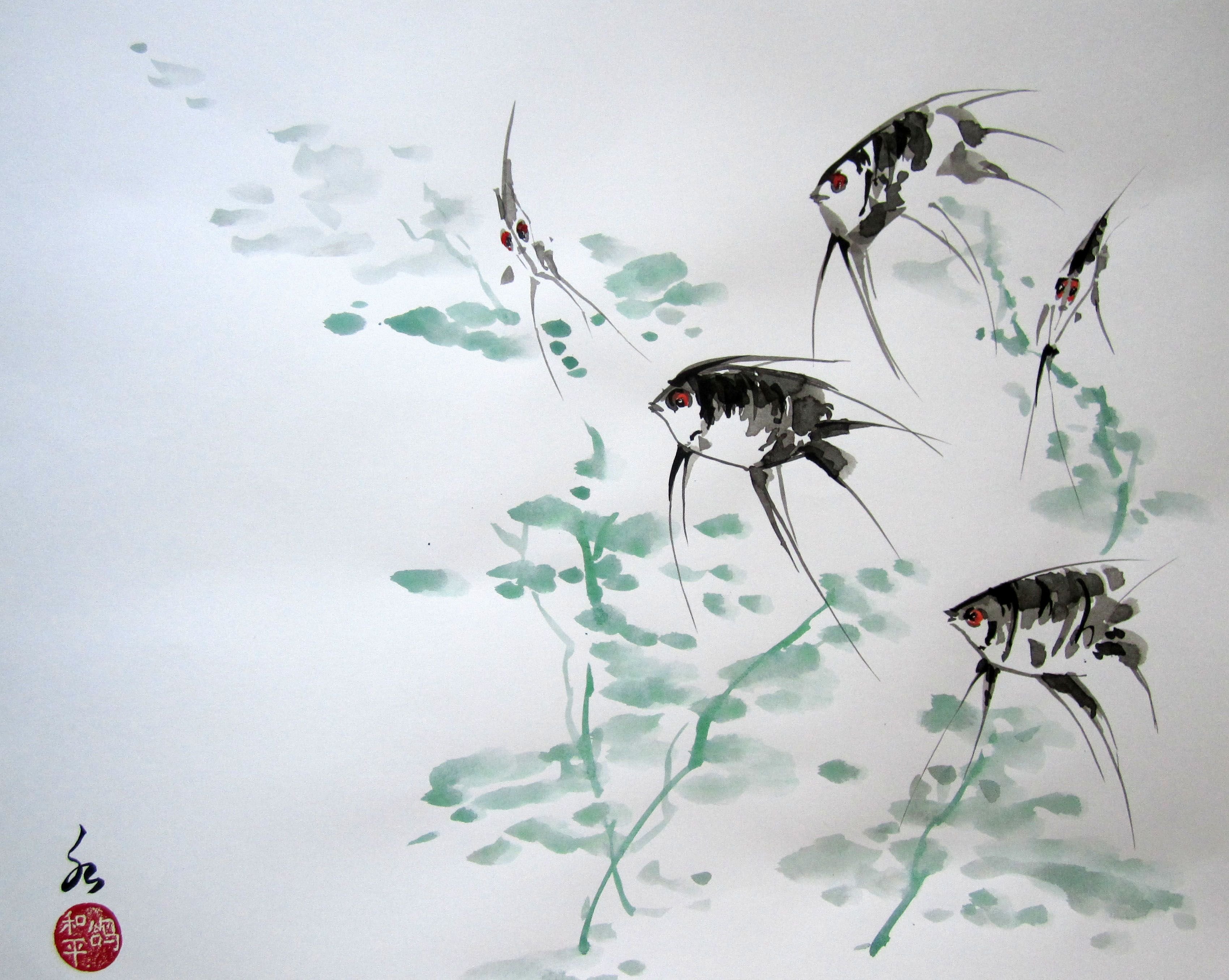 Японская живопись Суми-э рыбы