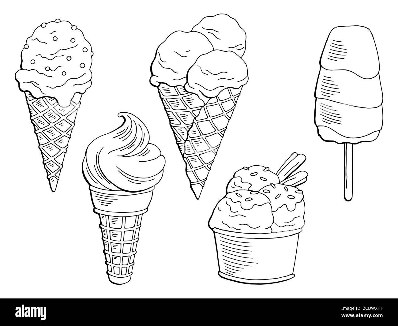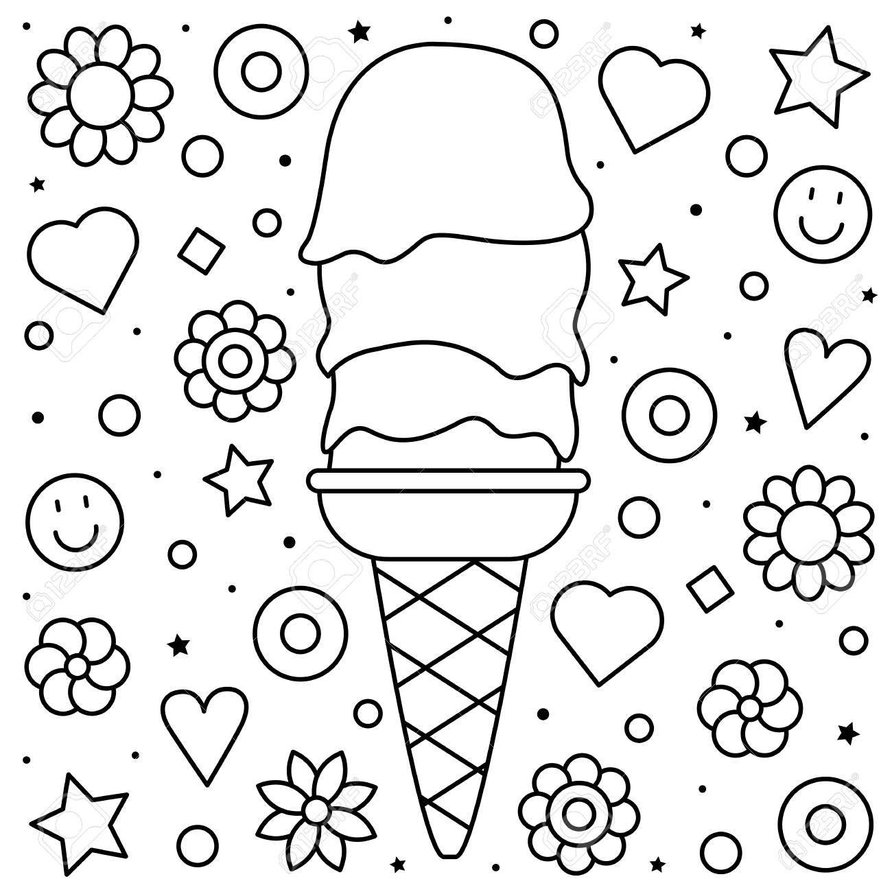Ice Cream cartoon Black and White