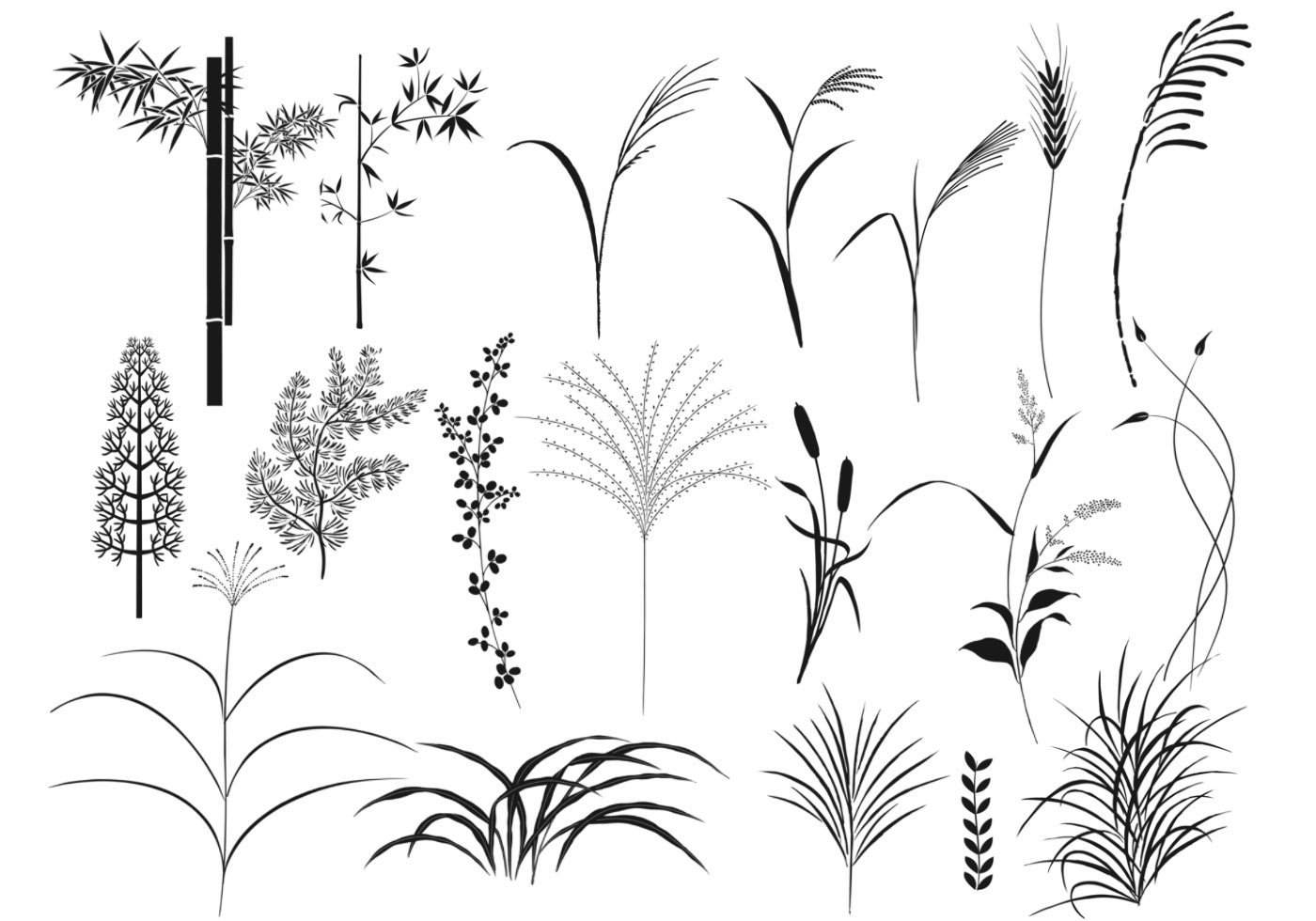 Силуэты камыша векторные