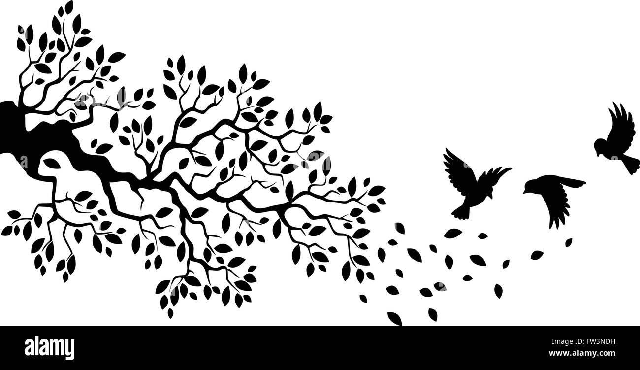 Птички на ветке силуэт