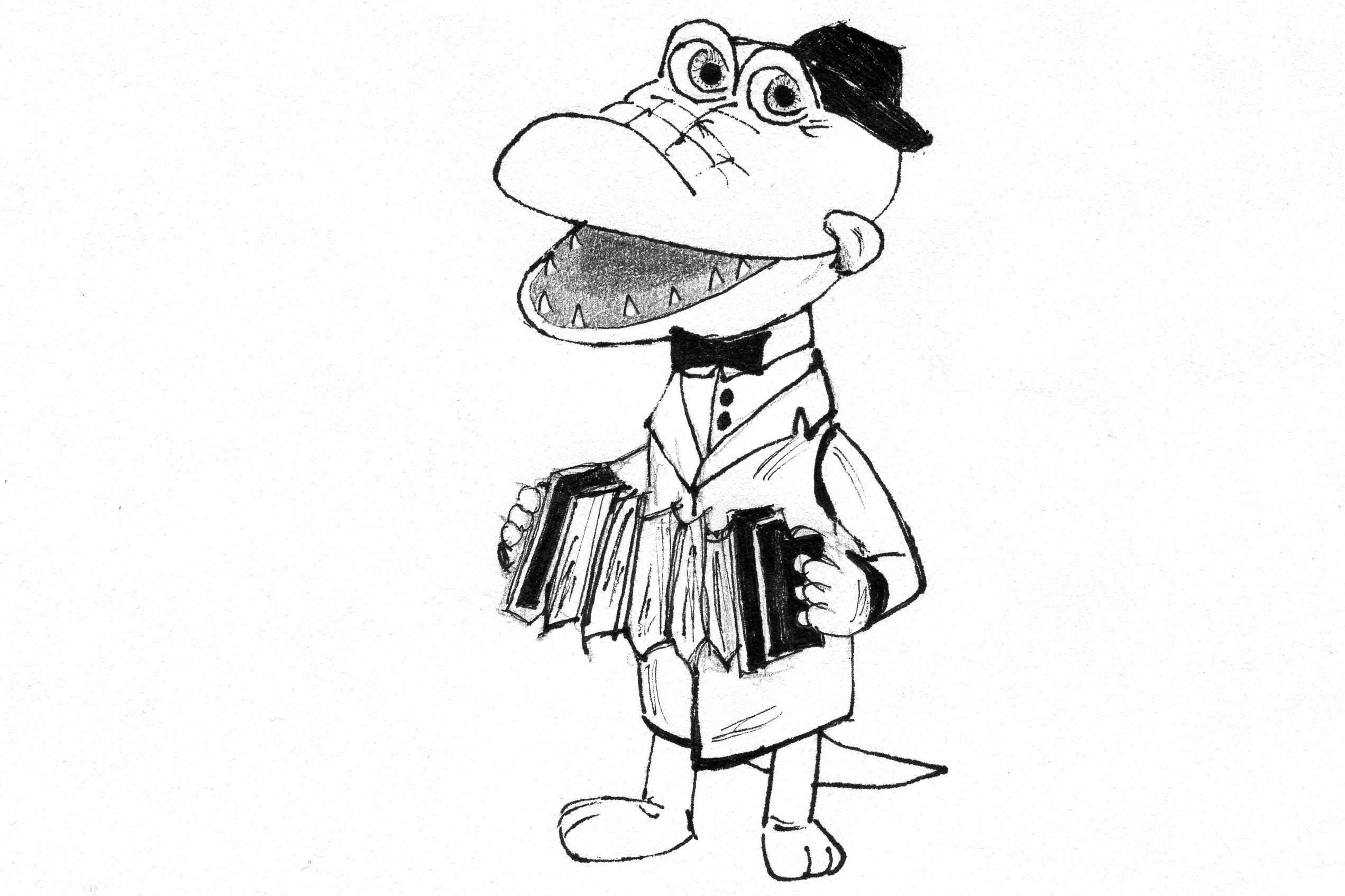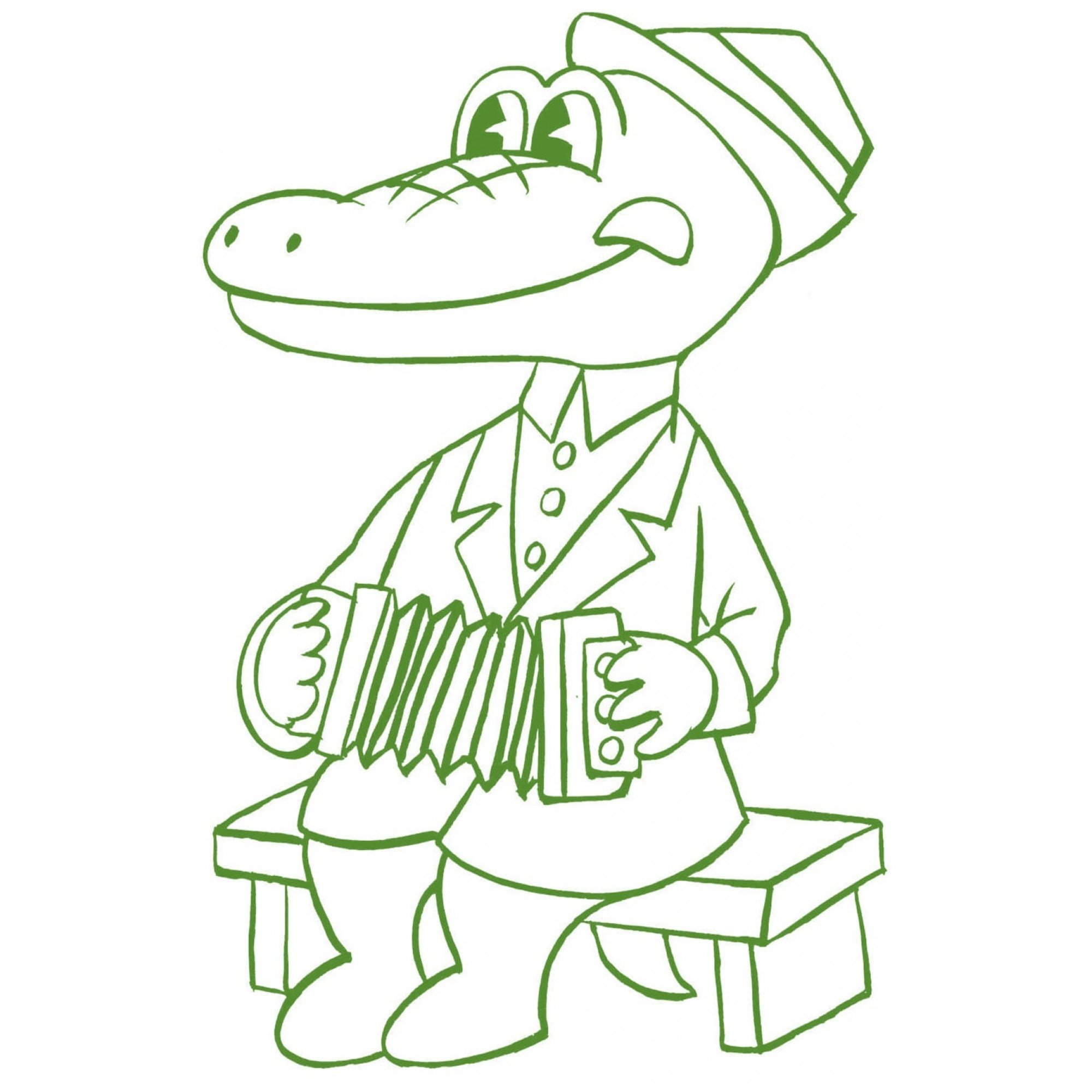 Крокодил Гена с гармошкой раскраска